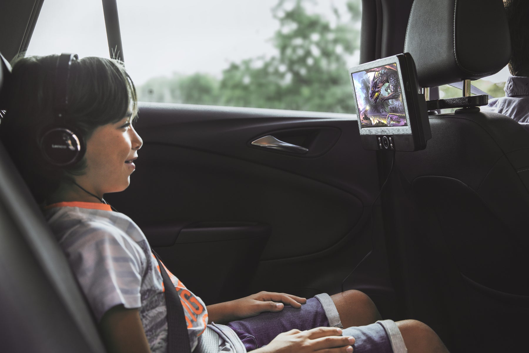 Das Lenco DVP-939 Set besteht aus zwei kompakten DVD-Spielern mit jeweils einem 9-Zoll-Bildschirm, welches mit Kopfhörern und einer passenden Kopfstützenbefestigung ausgeliefert wird. Seine Auflösung von 800 x 480 Pixel sorgt für eine ausgezeichnete Bildqualität. Fahren Sie mit Ihrer Familie regelmäßig für ein paar Tage mit dem Auto oder dem Zug weg? Dann ist der Lenco DVP-939 der perfekte Reisebegleiter. Dank der einfachen Bedienung (Fernbedienung mitgeliefert) können sich die Kinder stundenlang ihre Lieblingsfilme ansehen oder Lieblingshörspiele per CD anhören, so dass die Reise wie im Flug vergeht. Es ist möglich auf den Geräten gleichzeitig verschiedene Filme zu schauen oder Sie verbinden die Geräte und schauen den gleichen Inhalt, aber jeder über seinen Bildschirm. Zusätzlich wird Ihnen die Möglichkeit der Fortsetzungsfunktion geboten, d.h. Sie können den DVD-Spieler problemlos mitten im Film ausstellen und beim wieder einschalten dort weiterschauen, wo sie aufgehört haben. Über den USB-Eingang oder den SD/MMC-Karten-Steckplatz können Sie auch Ihre eigenen Videos und Fotos auf dem DVD-Spieler wiedergeben und gemeinsam mit der Familie anschauen. Der DVD-Spieler kann, dank der mitgelieferten festen Halterung, komfortabel an der Rückseite des Kopfstütze befestigt werden. Ein Standfuß macht es auch möglich, auf einem ebenen Untergrund entspannt schauen zu können. Der Lenco DVP-939 unterstützt die Videoformate MPEG1, MPEG2 und MPEG4, das Audioformat MP3 und das Bildformat JPEG. Das Tonsignal können Sie durch die zwei eingebauten Lautsprecher oder die mitgelieferten Köpfhörer genießen. Jeder Spieler verfügt über einen eingebauten Lithium-Ionen-Akku (für ca. 2 Stunden Spielzeit), so dass Sie das Gerät auch ohne Kabel nutzen können. Es werden aber sowohl ein 12 Volt Autoadapter als auch ein Netzkabel mitgeliefert. Der Lenco DVP-939 ist in schwarz erhältlich.