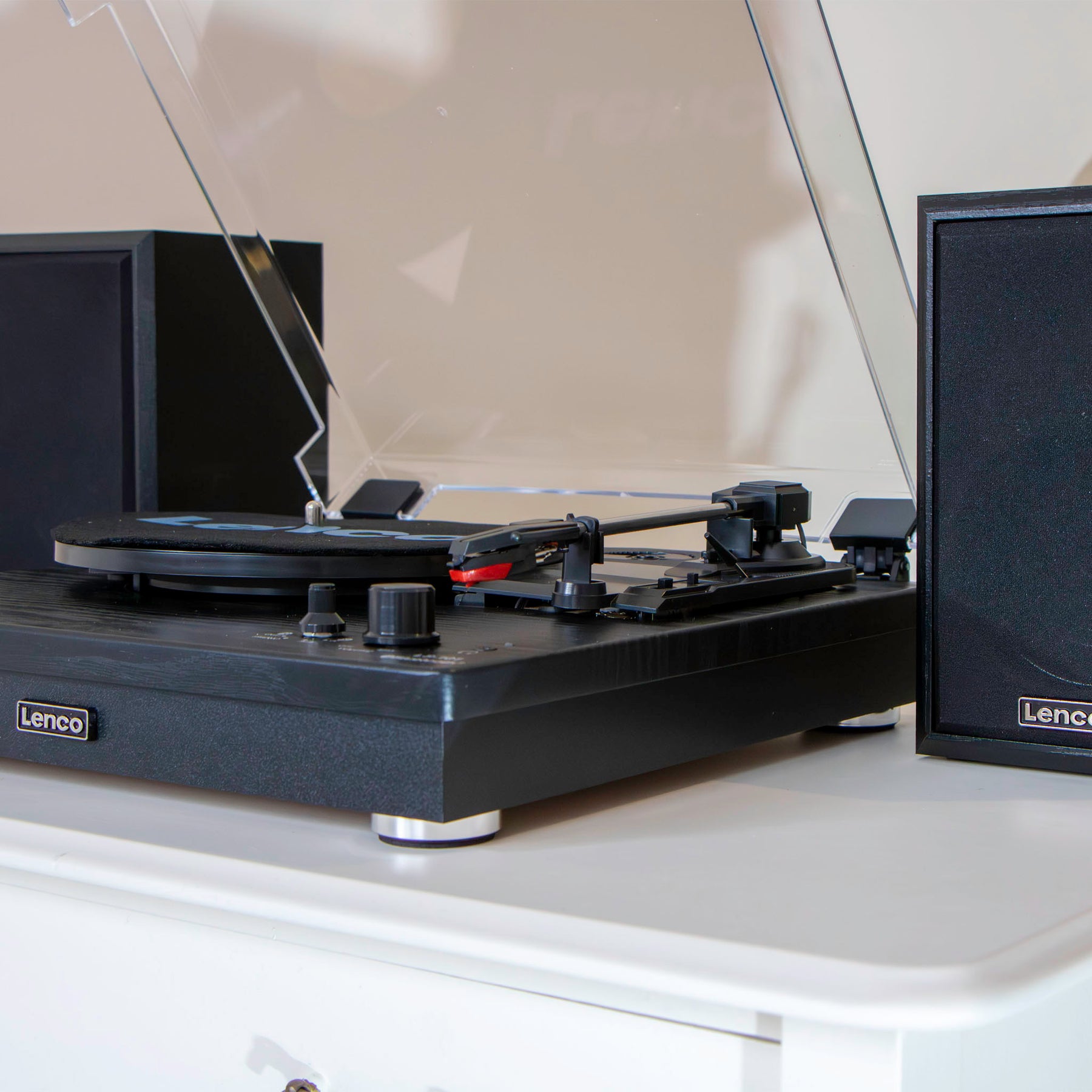 Genießen Sie Ihre Plattensammlung mit dem Plattenspieler LS-100WD von Lenco. Dank seiner zwei Lautsprecher, die jeweils eine Ausgangsleistung von 10W RMS haben, hören Sie Ihre Musik in bestmöglicher Klangqualität. Sie können die Lautsprecher auch separat vom Plattenspieler aufstellen, wodurch ein Stereo-Effekt entsteht.