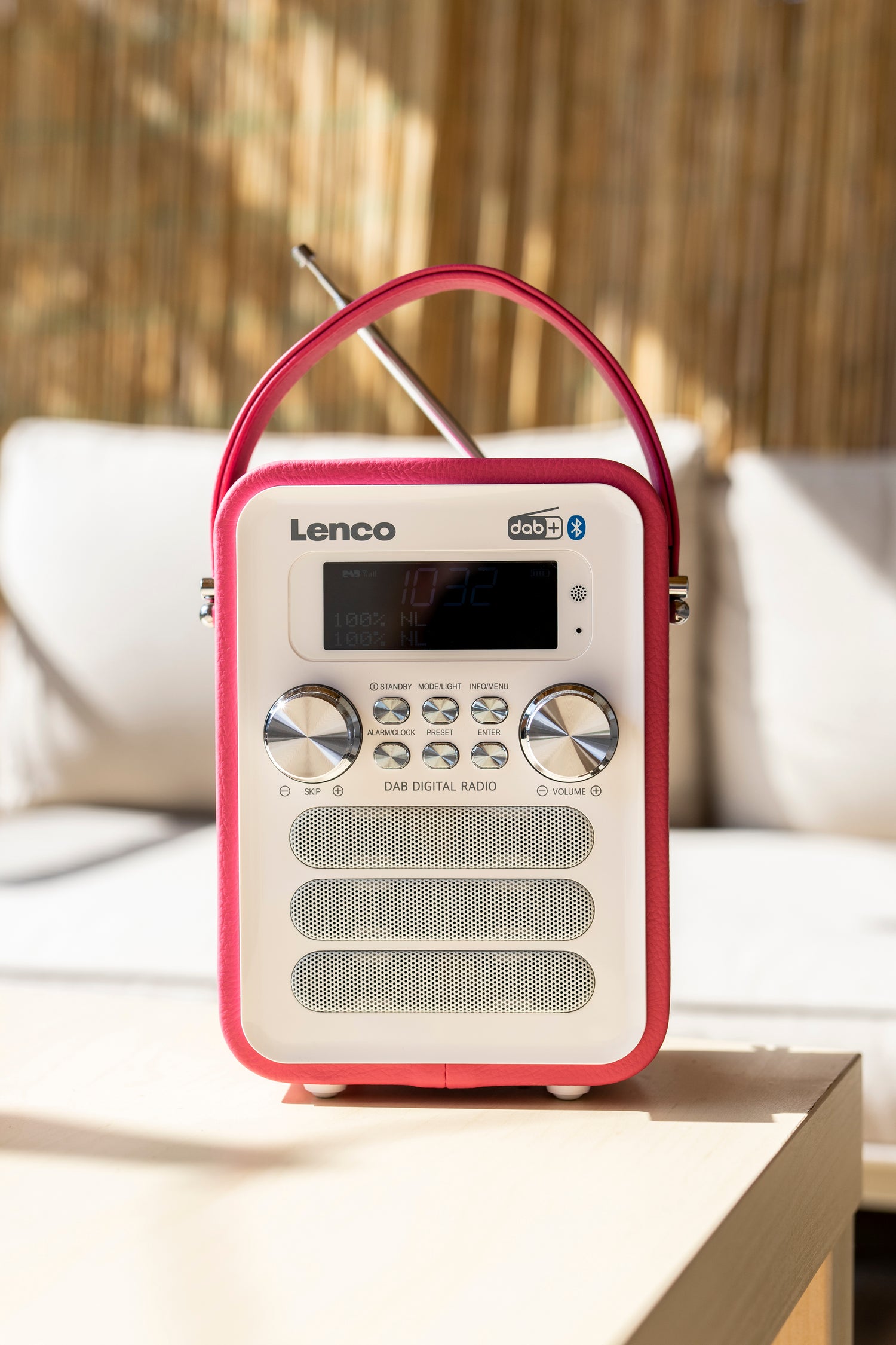 Von jetzt an kann das Lenco PDR-051 DAB+ Radio Sie überall hin begleiten. Mit einem Gewicht von weniger als einem Kilo, Abmessungen von nur 18 x 13 cm und einem praktischen Handgriff gibt es keinen Grund mehr, den Lenco zu Hause zu lassen. Wenn Sie mit Freunden in den Park gehen, kommt Lenco mit.