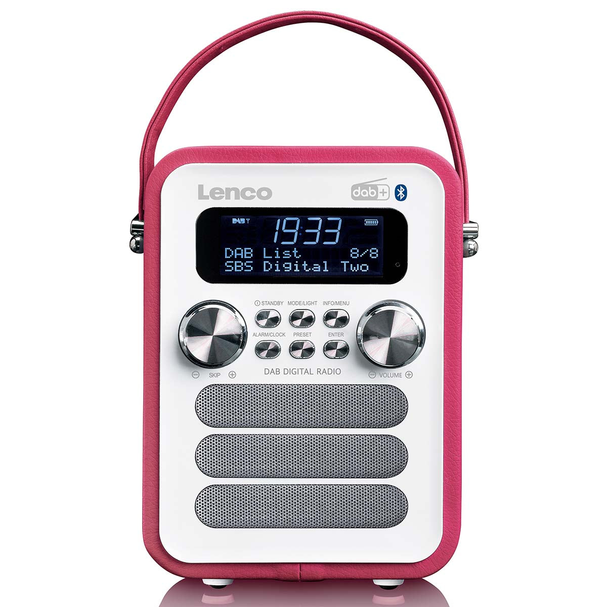 Lenco PDR-051PKWH - Tragbares DAB+ FM-Radio mit Bluetooth® und AUX-Eingang, aufladbarer Batterie - Pink - Pink/Weiss