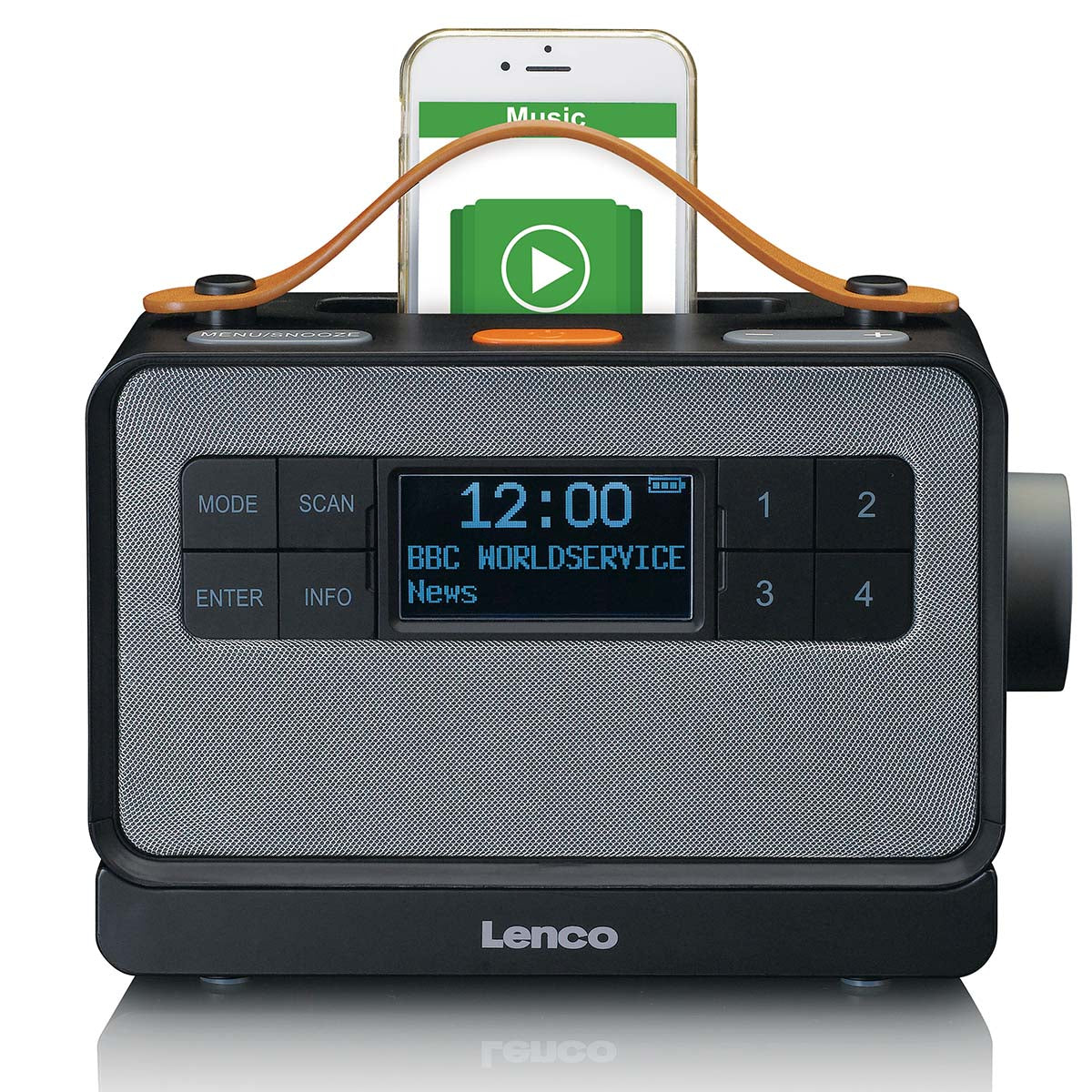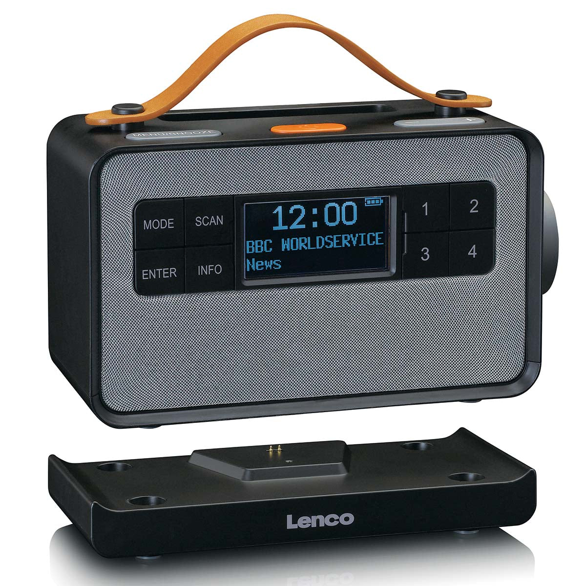Mit diesem tragbaren Radiogerät können Sie Radiosendungen in digitaler Klangqualität genießen. Auch als tragbarer Bluetooth®-Lautsprecher kann dieses Radiogerät verwendet werden. Legen Sie Ihr Handy oder Tablet in die Halterung des Lenco PDR-065BK und streamen Sie ganz einfach Ihre Lieblingsmusik. Dank des integrierten Akkus können Sie dieses DAB+ Radiogerät problemlos überallhin mitnehmen und jederzeit verwenden. Mit der mitgelieferten Ladestation funktioniert das Aufladen ganz einfach.