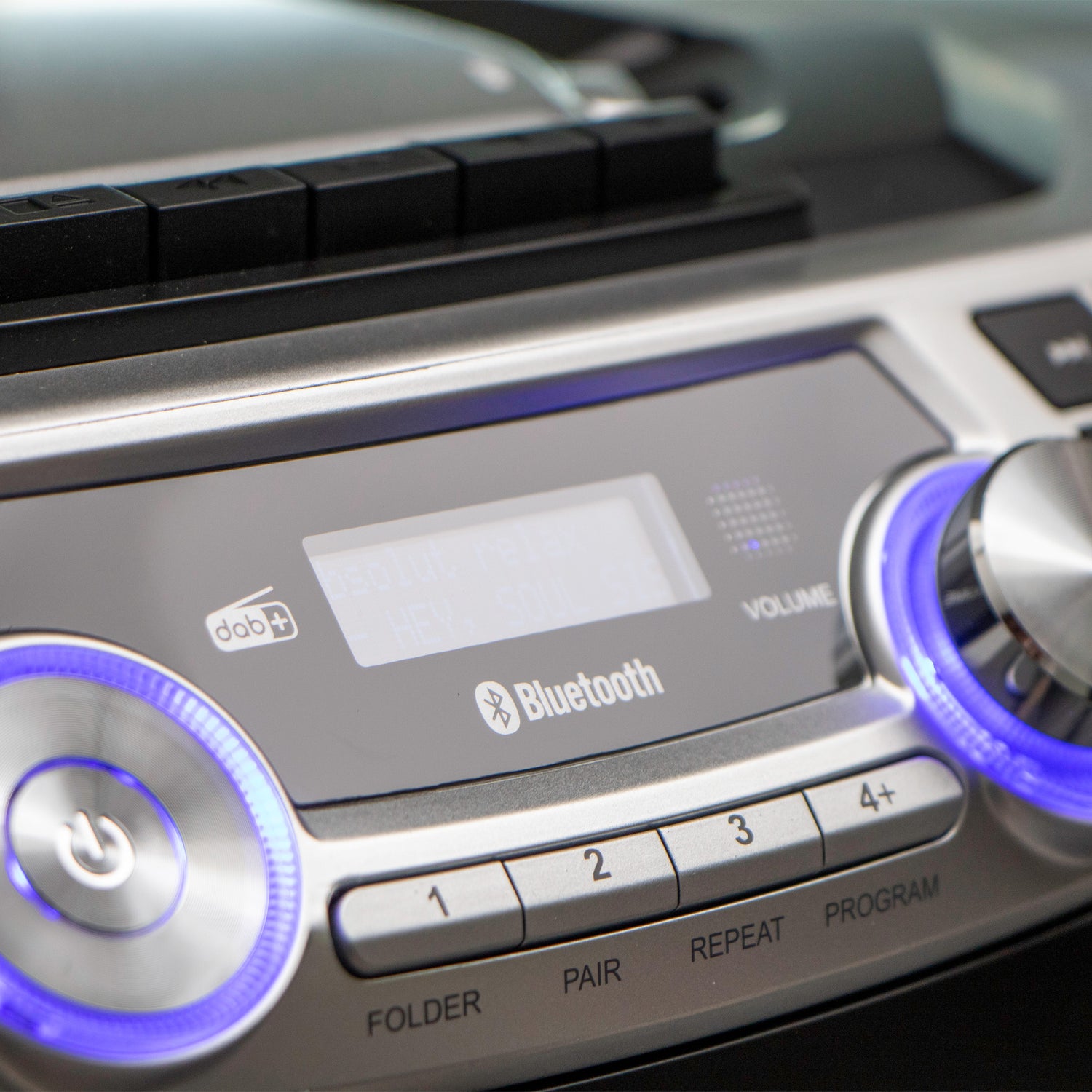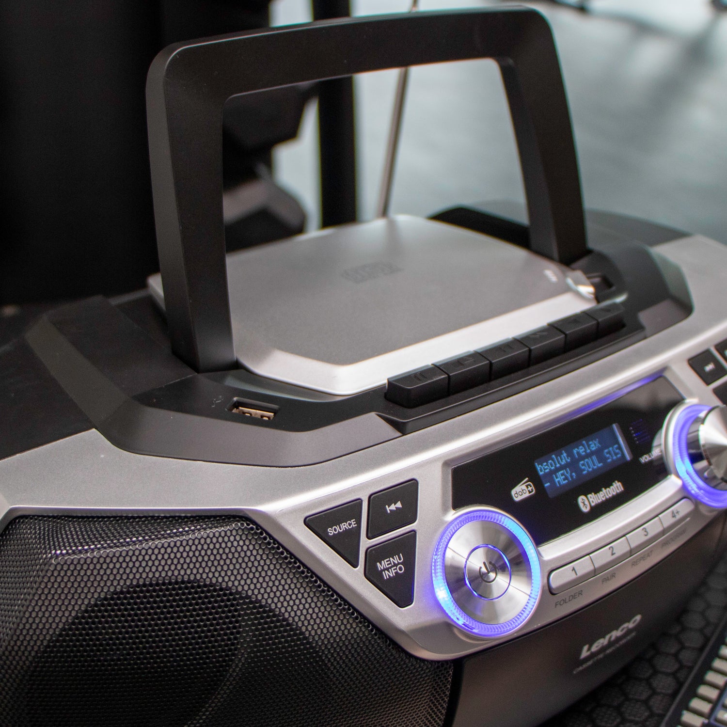Lenco SCD-720SI - Tragbare XXL Boombox mit DAB+ / FM-Radio, Bluetooth®, CD-, USB- und Kasetten-Spieler - Silber