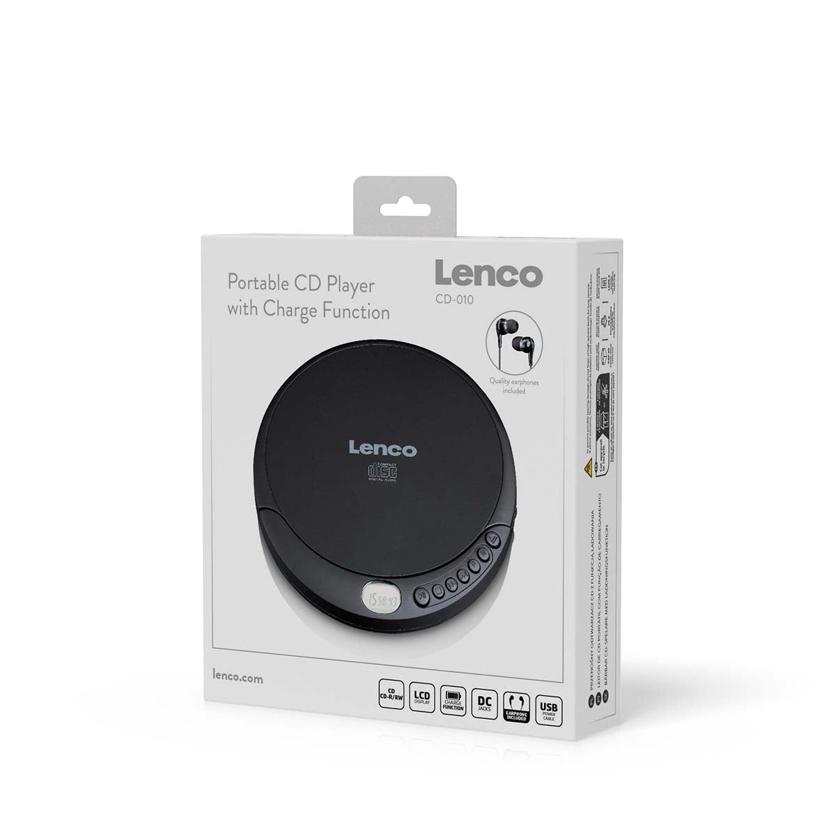 Der Lenco CD-010 ist ein praktischer tragbarer CD-Spieler. Er wird mit Kopfhörern und einem USB-Kabel ausgeliefert. Er verfügt über ein LCD-Display und einfach zu bedienende Tasten. Sind Sie oft unterwegs? Der tragbare CD-Spieler ist der perfekte Reisebegleiter. Mit dem Lenco CD-010 haben Sie Ihre Lieblingsmusik immer und überall dabei. Haben Sie es satt, sich Ihr Lieblingsalbum chronologisch anzuhören? Mit dem Lenco CD-010 ist es möglich, die Reihenfolge der Wiedergabe selbst zu bestimmen. Sie können den CD-Spieler entscheiden lassen, was das nächste Lied ist, oder selbst eine Reihenfolge programmieren. Zudem kann Ihr Lieblingslied aus dem Album mit der Wiederholungfunktion endlos angehört werden. Oder hören Sie sich Ihre ganz eigenen CD´s an, der Lenco CD-010 liest auch CD-R/CD-RW Formate. Der Lenco CD-010 kann mit Batterien oder Akku-Batterien (nicht im Lieferumfang) betrieben werden, verfügt allerdings auch über eine Akkuladefunktion. Wenn der CD-Spieler mehr als 30 Sekunden lang keine Musik abspielt, schaltet er sich automatisch aus. Auf diese Weise sparen Sie Energie. Der Lenco CD-010 ist in schwarz erhältlich.