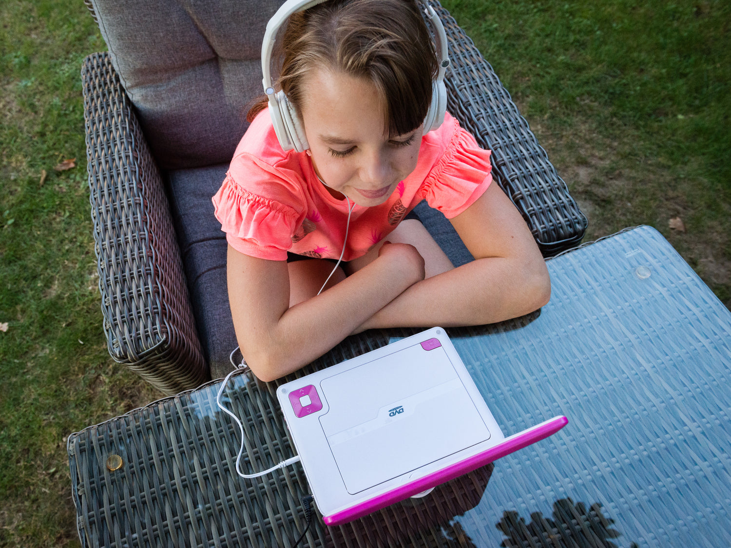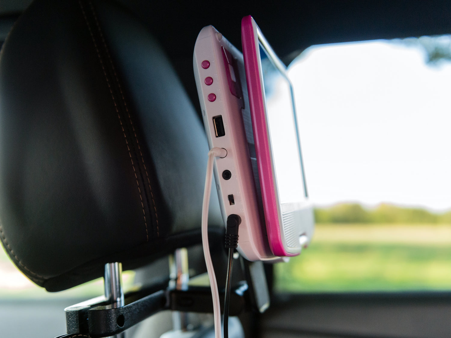 Lenco DVP-910PK - 9 Zoll tragbarer DVD-Spieler mit Kopfhörer und Kopfstützenbefestigung - integrierter Akku - USB-Eingang - Pink/Weiß - Pink/Weiss / Euro / Typ-C (CEE 7/16)