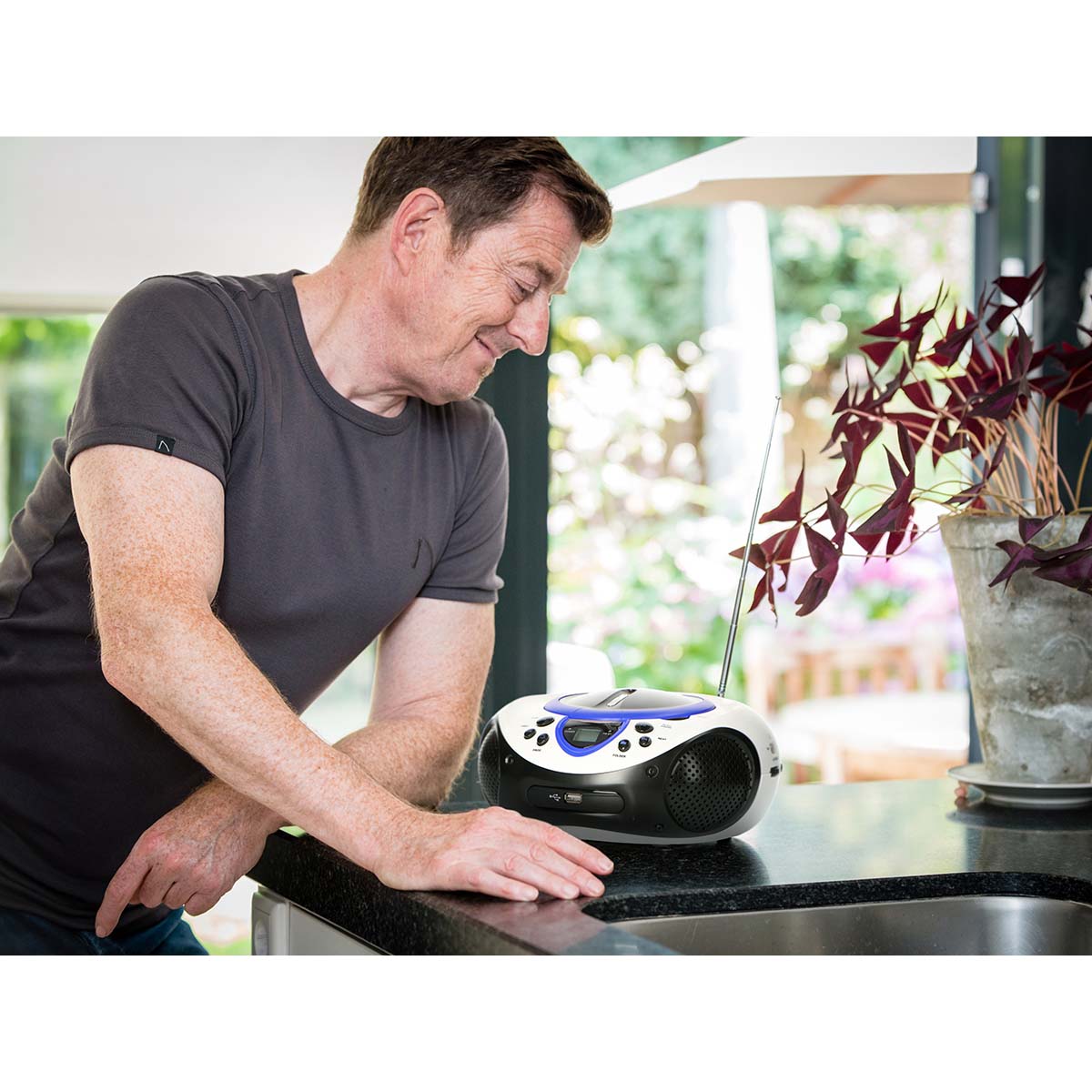 Das Lenco SCD-38 ist ein tragbares FM-Radio mit CD/MP3-Player. Es ist sehr robust, hat ein ansprechendes Design und verfügt über einfach zu bedienende Tasten. Es ist mit einem USB-und AUX-Eingang ausgestattet. Sie brauchen das Gerät nur an das Stromnetz anzuschließen, können es aber auch mit Batterien betreiben. Mit nur einem Knopfdruck können Sie sofort Ihre Lieblings-CDs oder Radiosender genießen. Das Lenco SCD-38 hat überdies einen USB-Anschluss. Speichern Sie Musik auf Ihrem USB-Stick und spielen Sie Ihre MP3-Bestände auf dem Lenco SCD-38 ab. Das Lenco SCD-38 ist in blau, pink und grün erhältlich.