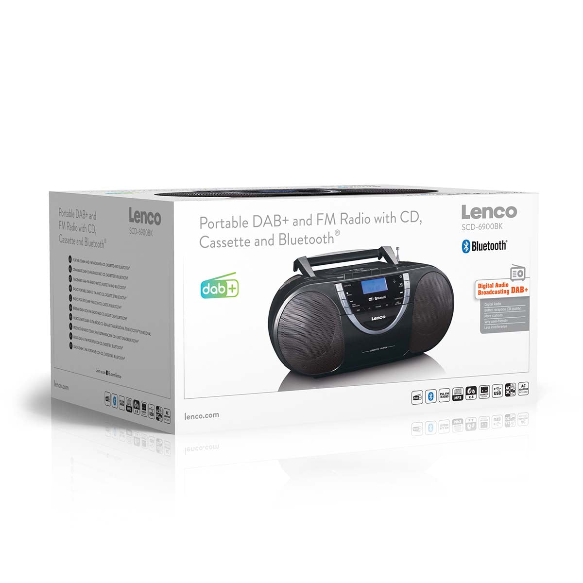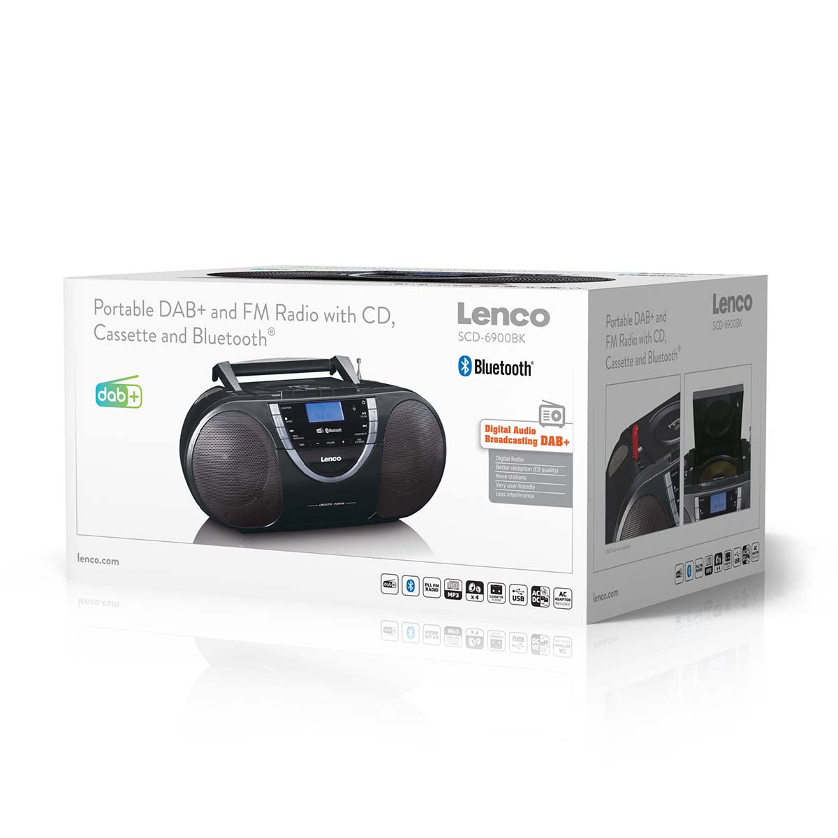 Hören Sie Ihre Lieblingsmusik mit der tragbaren Boombox SCD-6900BK von Lenco. Diese Boombox ist ein DAB+-Radio und Bluetooth®-Lautsprecher, der sowohl DAB+ als auch FM-Frequenzen störungsfrei empfängt.