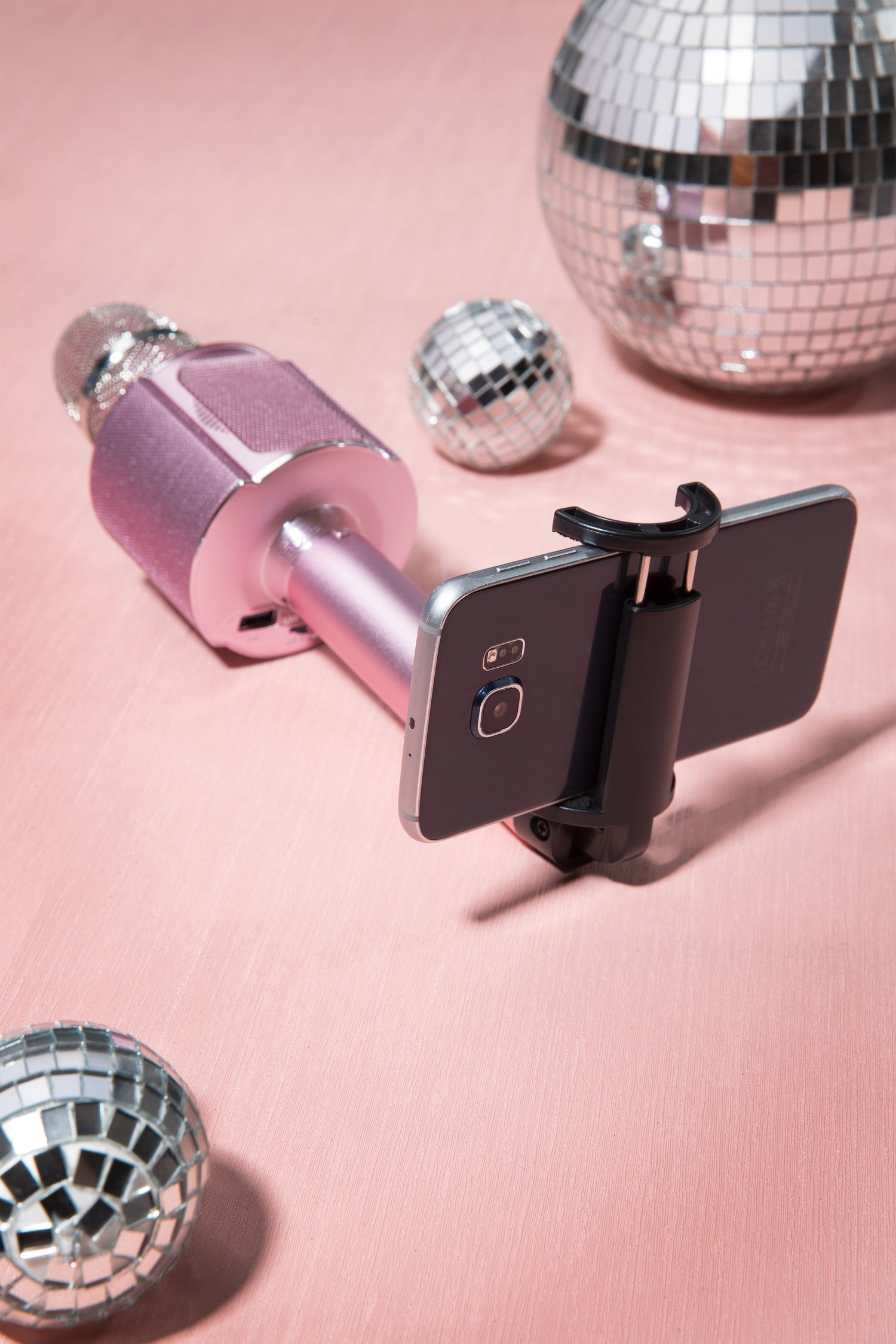 Das Lenco BMC-090 ist ein Karaoke-Mikrofon, das über eine Bluetooth-Verbindung oder USB/SD-Karten-Eingang mit Musik versorgt wird. Singen Sie zu Ihren Lieblingsliedern und sorgen Sie mit den integrierten LED-Lichtern für einen noch beeindruckenderen Auftritt. Es ist sehr kompakt, so dass es ganz einfach überall mithin genommen werden kann. Es wird mit USB-Kabel ausgeliefert und ist mit USB-Eingang, Line-Ausgang und Micro-SD-Kartensteckplatz ausgestattet. Zudem hat es einen integrierten Akku für bis zu 8 Stunden Laufzeit, damit Ihre Freunde, Familie und Sie sich stundenlang musikalisch ausleben können. Falls Sie den Liedtext beim Singen benötigen können Sie Ihr Smartphone an der dafür angebrachten Halterung befestigen. Für eine gute Kontrolle ist die Lautstärke des Mikrofons und der Musik einstellbar, ebenso wie das Echo. Mit dem 5 Watt RMS starken Lautsprecher haben Sie zudem noch einen leistungsfähigen Bluetooth-Lautsprecher. Ein weiteres durchdachtes Feature: Über den Line-Ausgang können Sie das Lenco BMC-090 an eine Hifi-Anlage anschließen und als Bluetooth-Transmitter nutzen. Das Lenco BMC-090 ist in rosa und schwarz erhältlich.