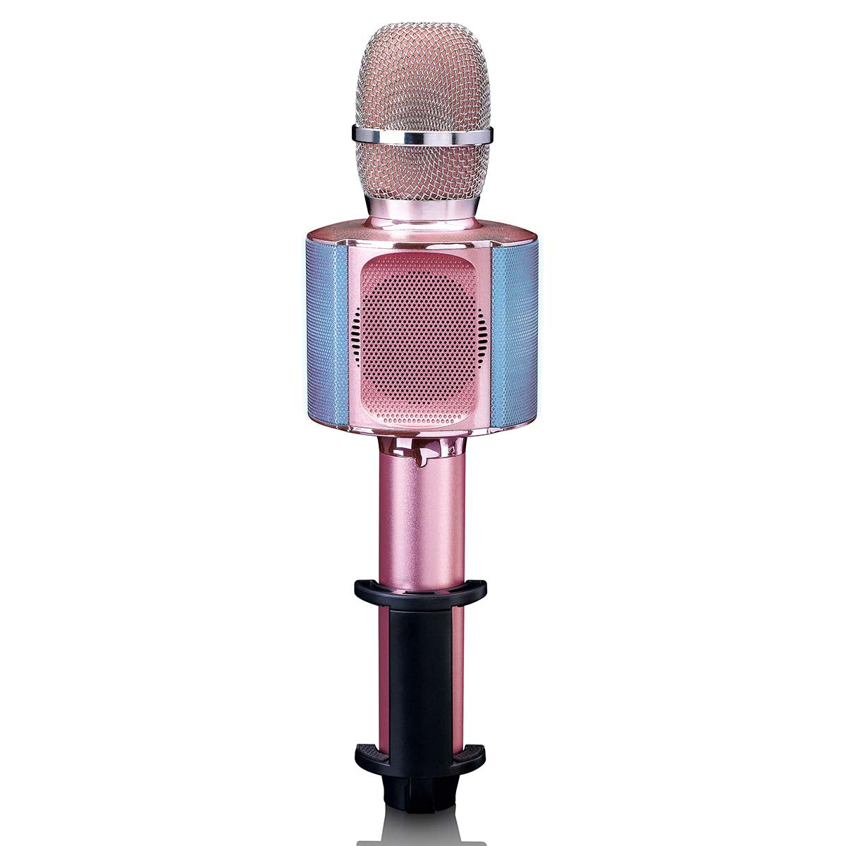 Lenco BMC-090PK - Karaoke Mikrofon mit Bluetooth® - 5 Watt RMS Lautsprecher - Integrierter Akku - Lichteffekte - Handyhalter - USB/SD - Pink - Pink