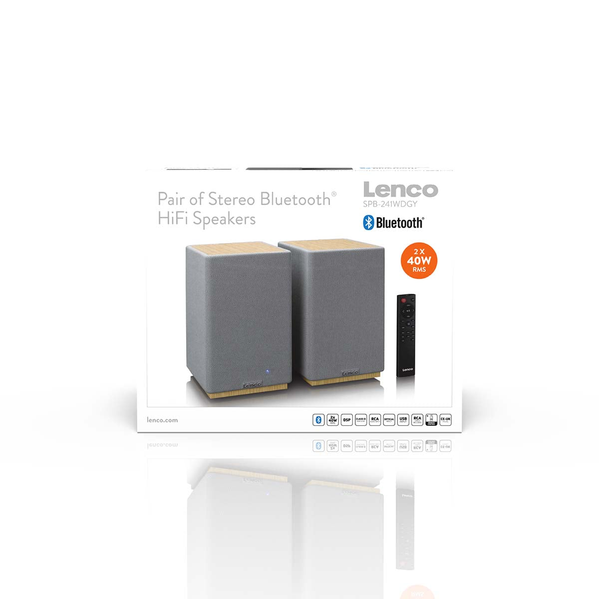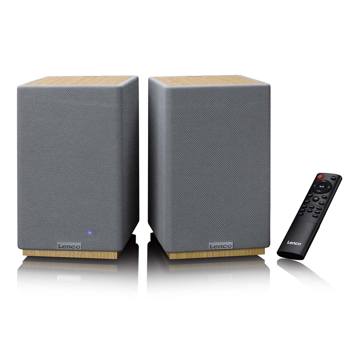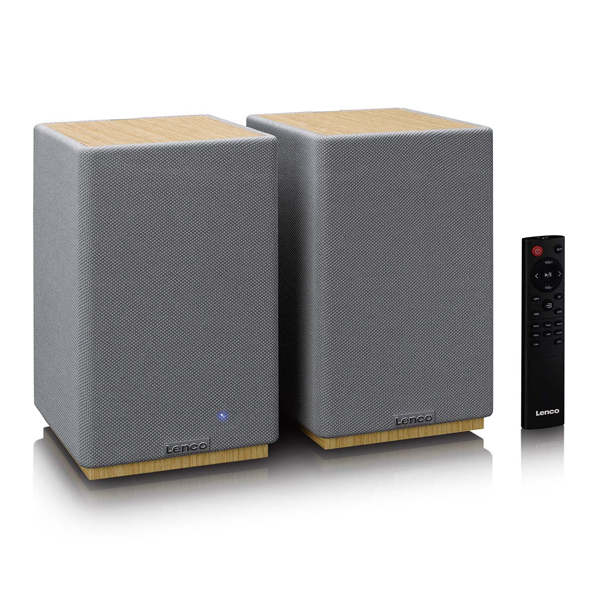 Lenco SPB-241WDGY - Set aus 2 HiFi Stereo Bluetooth® Lautsprechern - Kraftvoller Klang in stilvollem Design - Holz/Grau