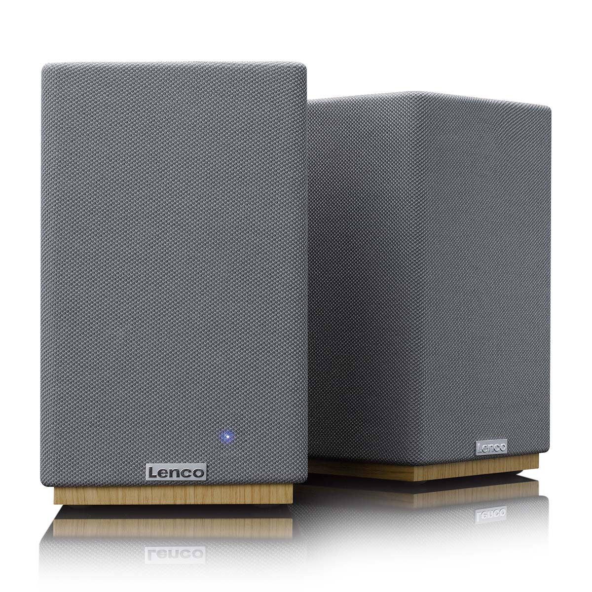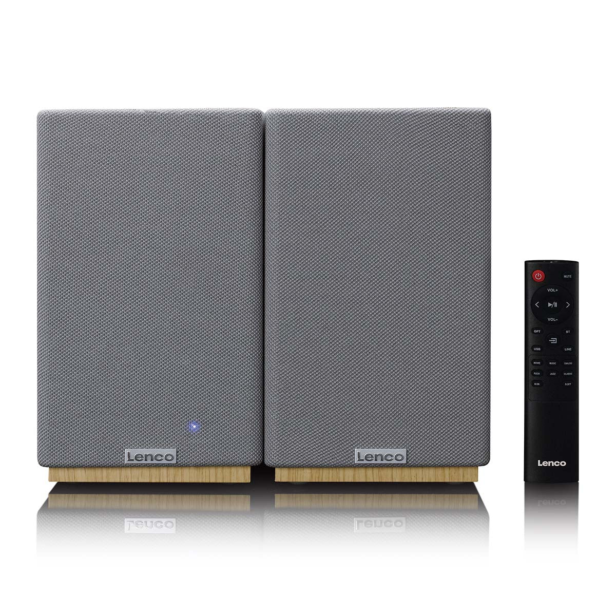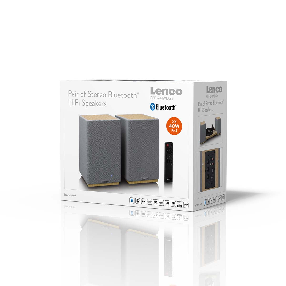 Lenco SPB-241WDGY - Set aus 2 HiFi Stereo Bluetooth® Lautsprechern - Kraftvoller Klang in stilvollem Design - Holz/Grau