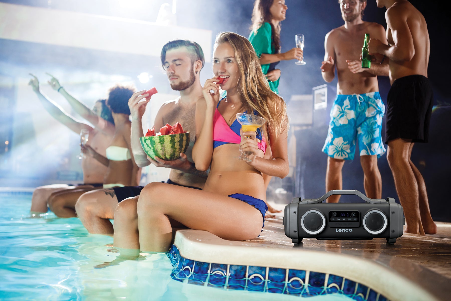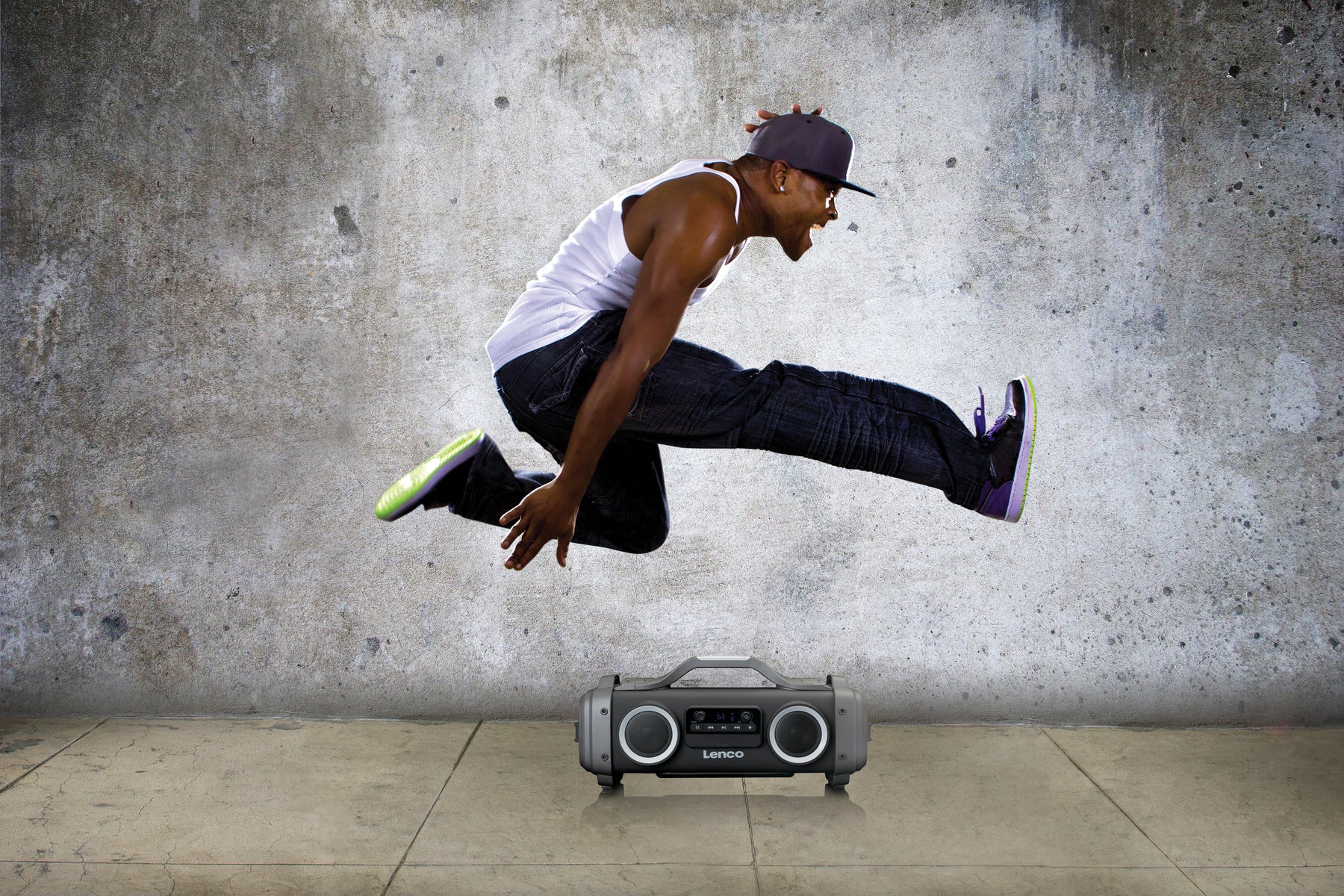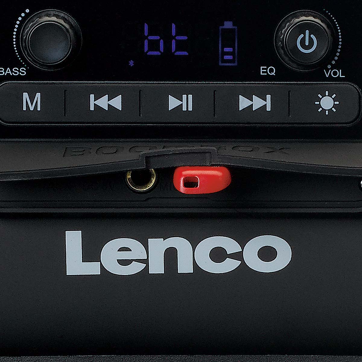 Die Lenco SPR-200BK ist eine tragbare IPX4 Boombox mit FM-Radio und Bluetooth. Sie bietet FM-Radioempfang, so dass Sie den Tag immer mit Ihrem Lieblingsradiosender beginnen können. Über Bluetooth können Sie Ihre Lieblings-Playlisten von Ihrem Smartphone oder Tablet streamen.
