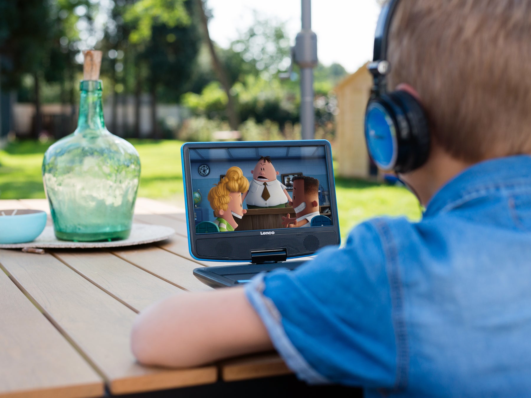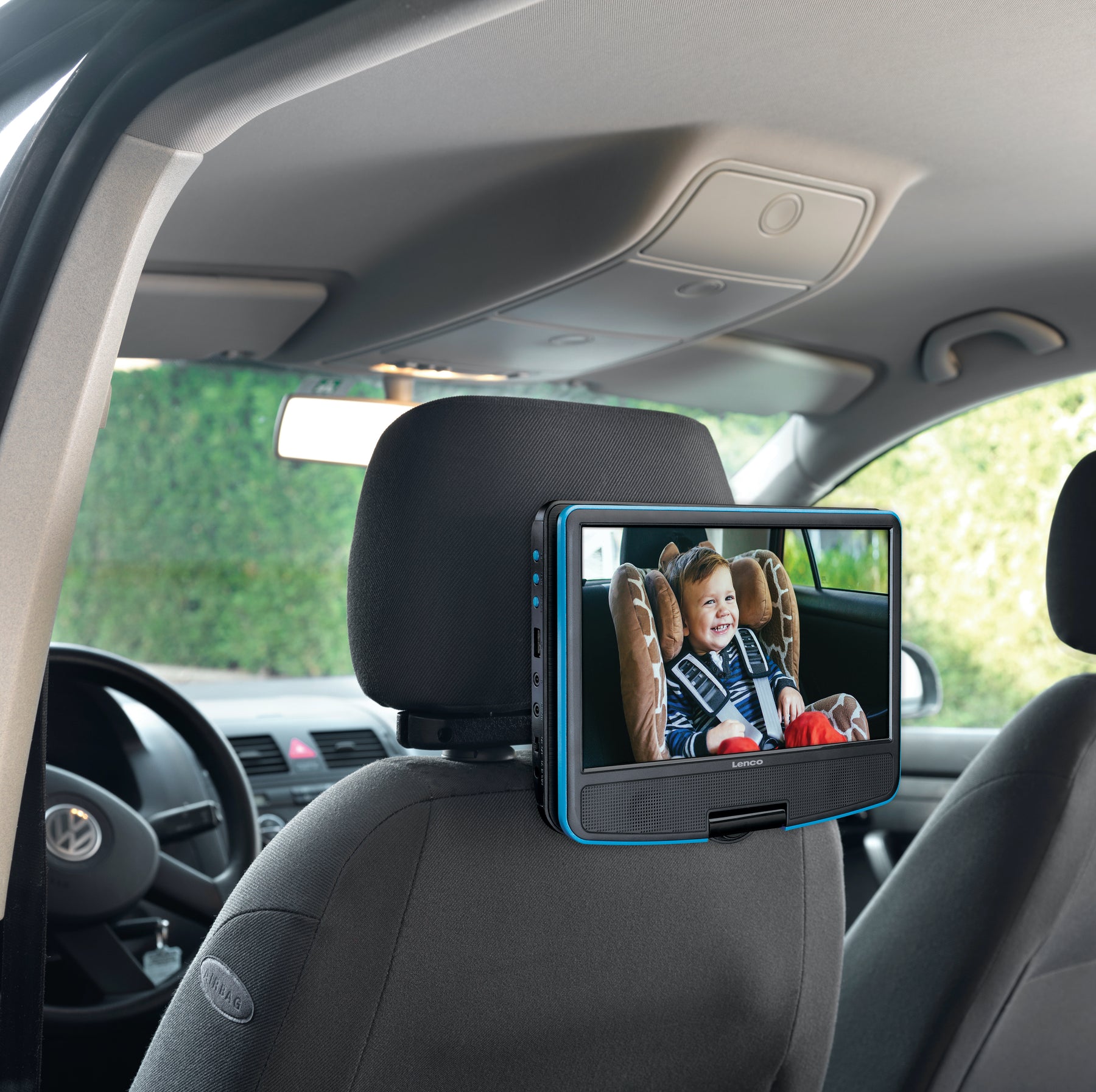 Lenco DVP-910BU - 9 Zoll tragbarer DVD-Spieler mit Kopfhörer und Kopfstützenbefestigung - integrierter Akku - USB-Eingang - Blau/Schwarz