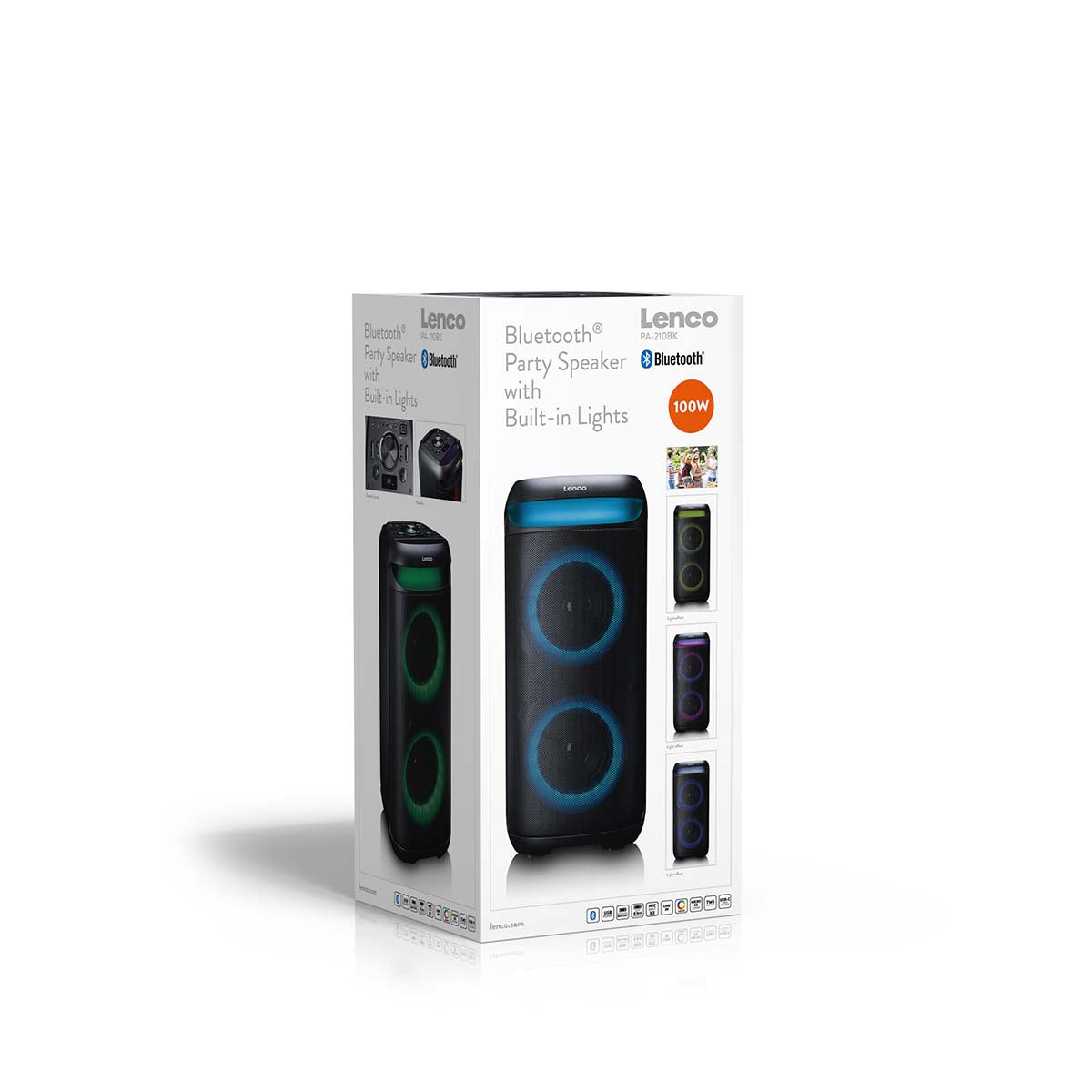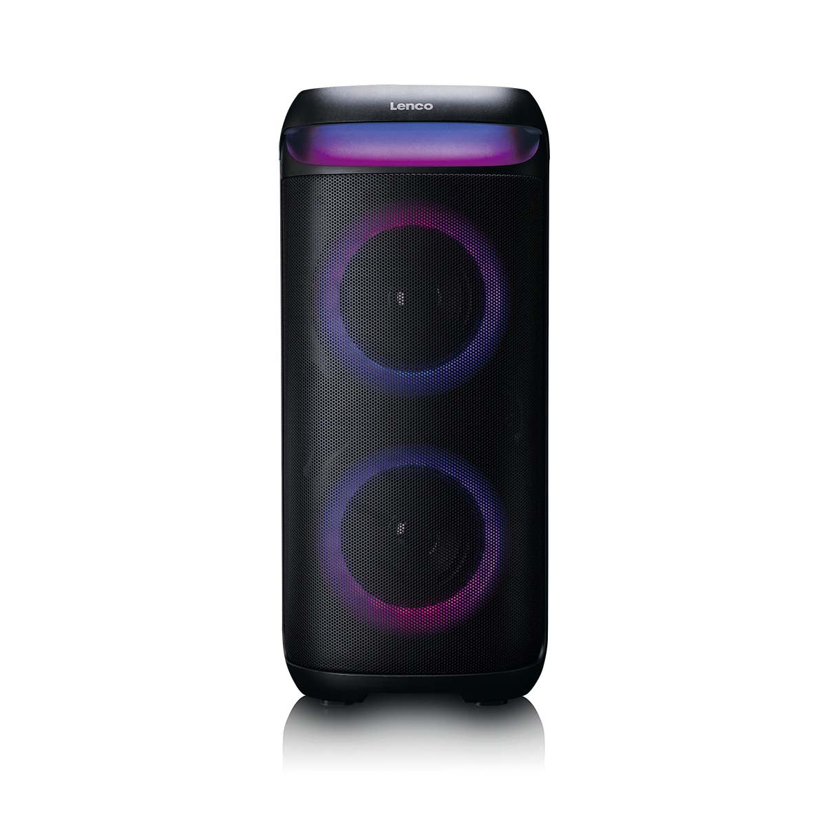 Lenco PA-210BK - Bluetooth® Party-Lautsprecher mit LED-Lichteffekten - 100 W Leistung, TWS, USB, bis zu 12 Stunden Akkulaufzeit - Schwarz