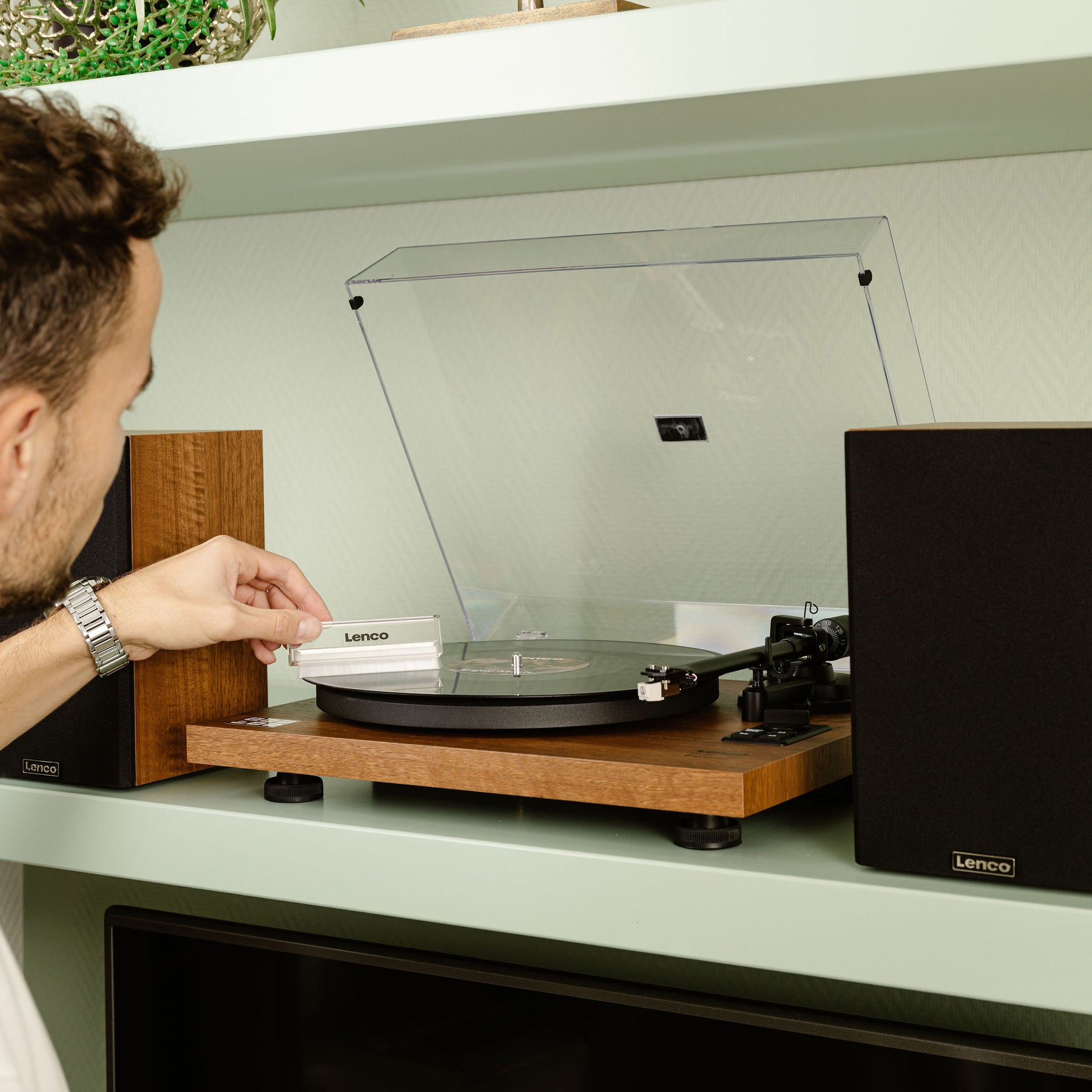 Der Lenco LS-480WD ist ein Plattenspieler mit 2 separaten Holzlautsprechern. Einfach zu bedienen. So kannst du im Handumdrehen deine Lieblingsvinyls genießen! Die mitgelieferten Lautsprecher sind einfach anzuschließen.