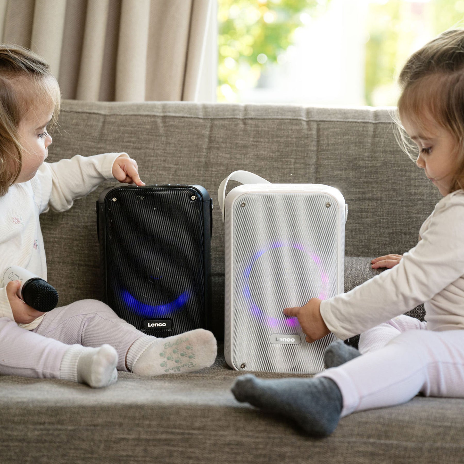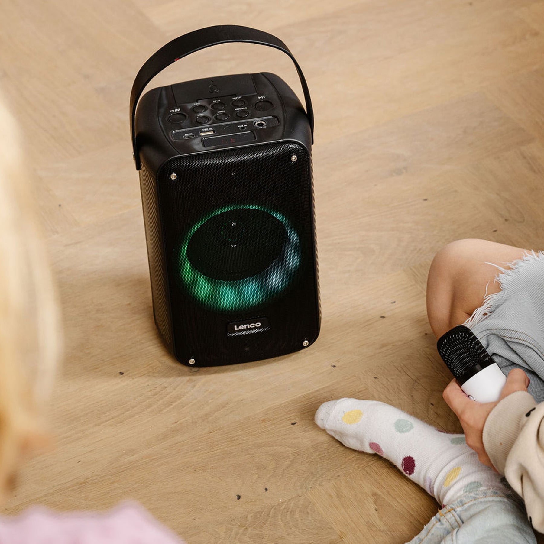 LENCO BTC-060BK - Karaoke-Set mit Bluetooth®, wiederaufladbarem Akku, drahtlosem Karaoke-Mikrofon und Disco-LED-Beleuchtung
