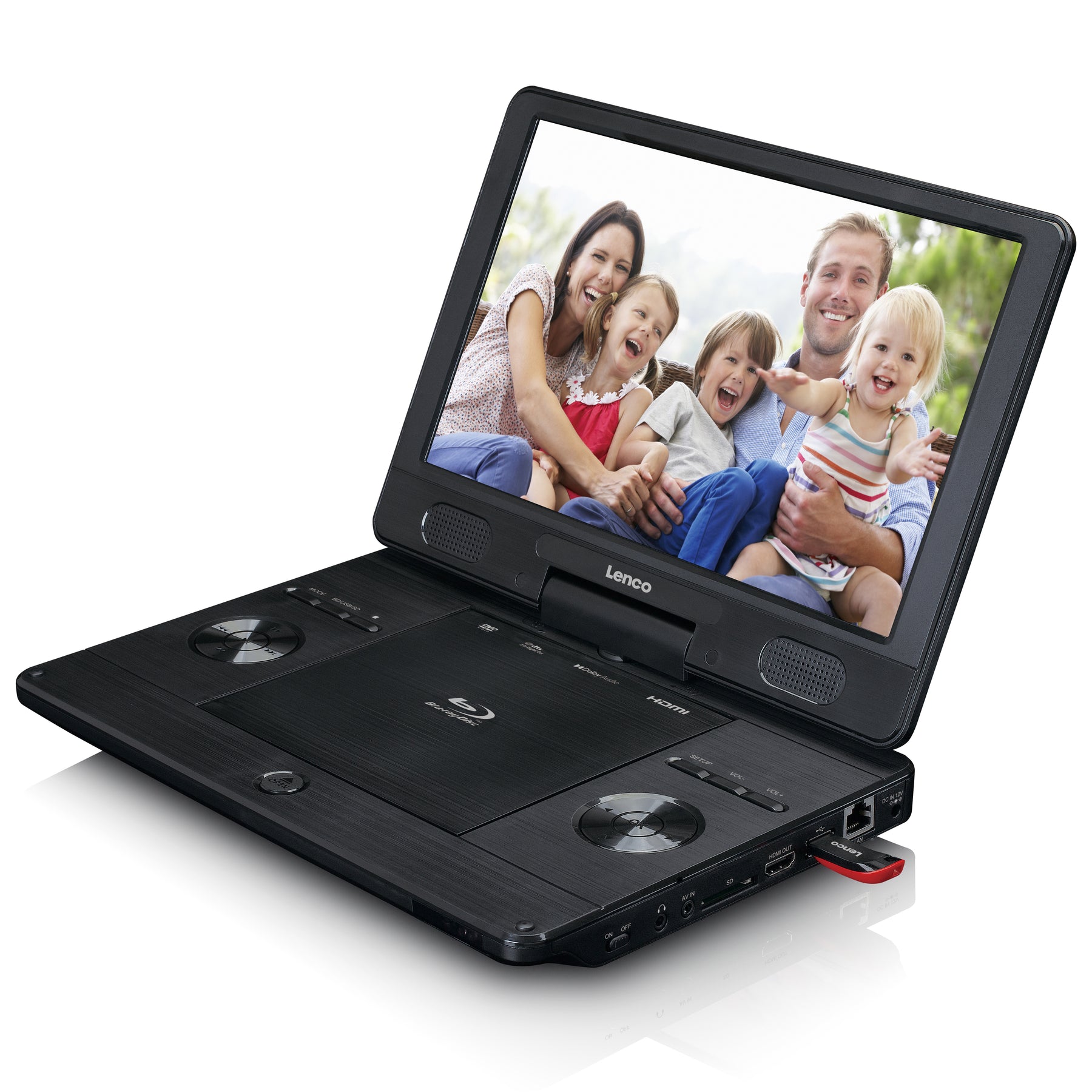 Der Lenco BRP-1150BK ist ein tragbarer Blu-ray / DVD-Player mit 11,5"-Bildschirm. Dank seiner kompakten Größe lässt sich der Lenco BRP-1150BK leicht überallhin mitnehmen. Fahren Sie regelmäßig für ein paar Tage mit dem Auto oder der Bahn weg? Dann ist der Lenco BRP-1150BK der perfekte Reisebegleiter. Die Kinder können sich stundenlang ungestört die besten Filme ansehen, so dass die Zeit wie im Flug vergeht. Über den USB-Anschluss und den SD-Kartenslot können Sie auch eigene Videos und Fotos auf dem Blu-ray / DVD-Player abspielen und gemeinsam mit der Familie anschauen.