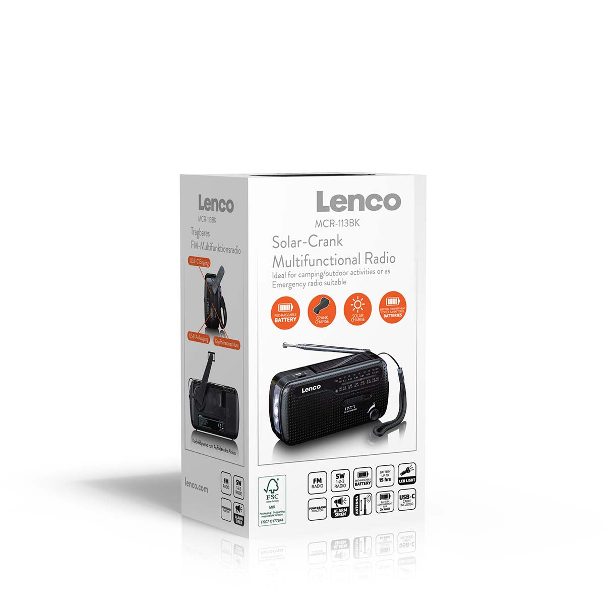 Lenco MCR-113BK - Tragbares Notfall Kurbelradio mit Aufziehfunktion, Taschenlampe und Powerbank in einem - Schwarz