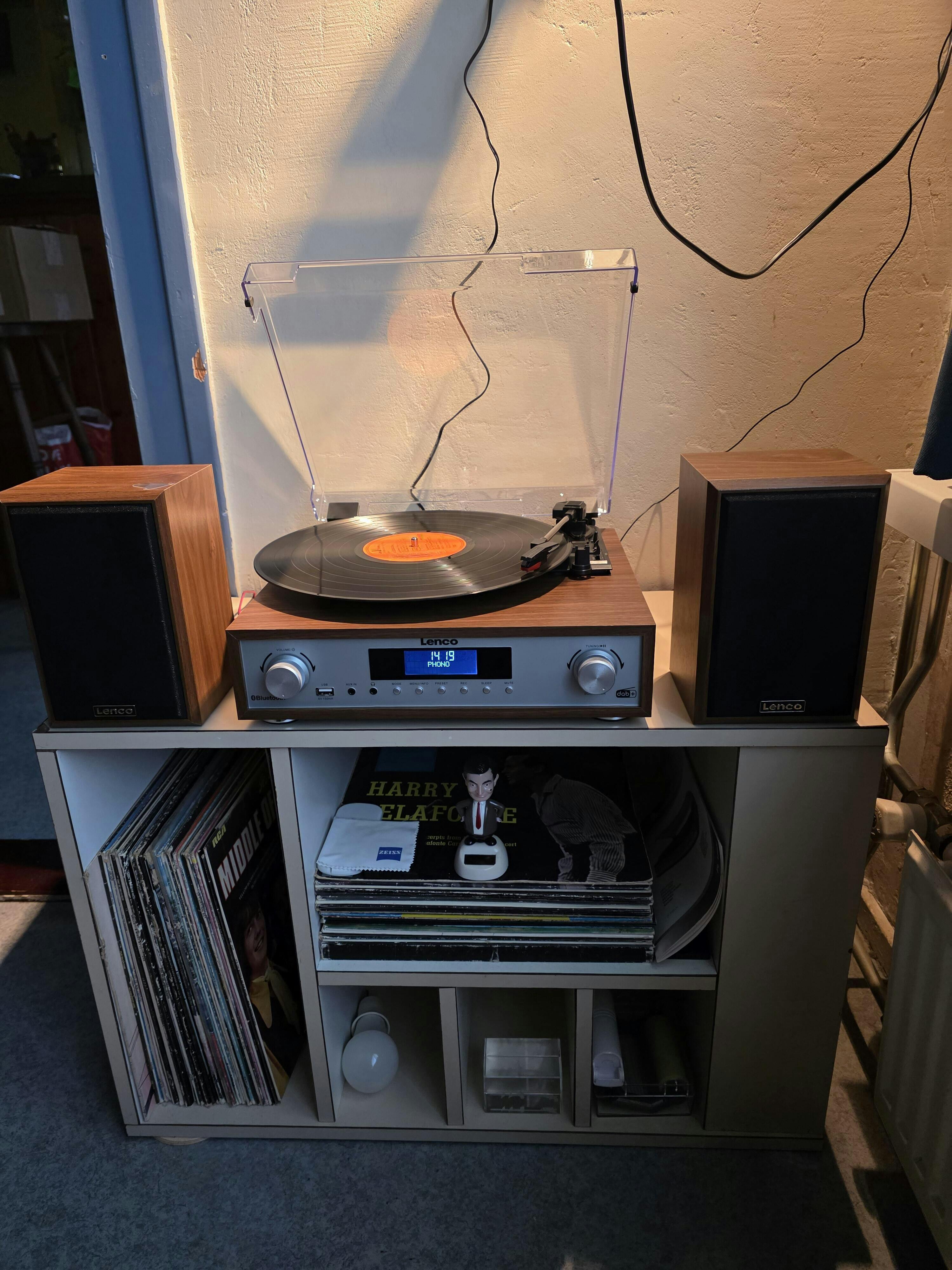 | Plattenspieler mit Lautsprecher | Ja, externe verkabelte Lautsprecher |