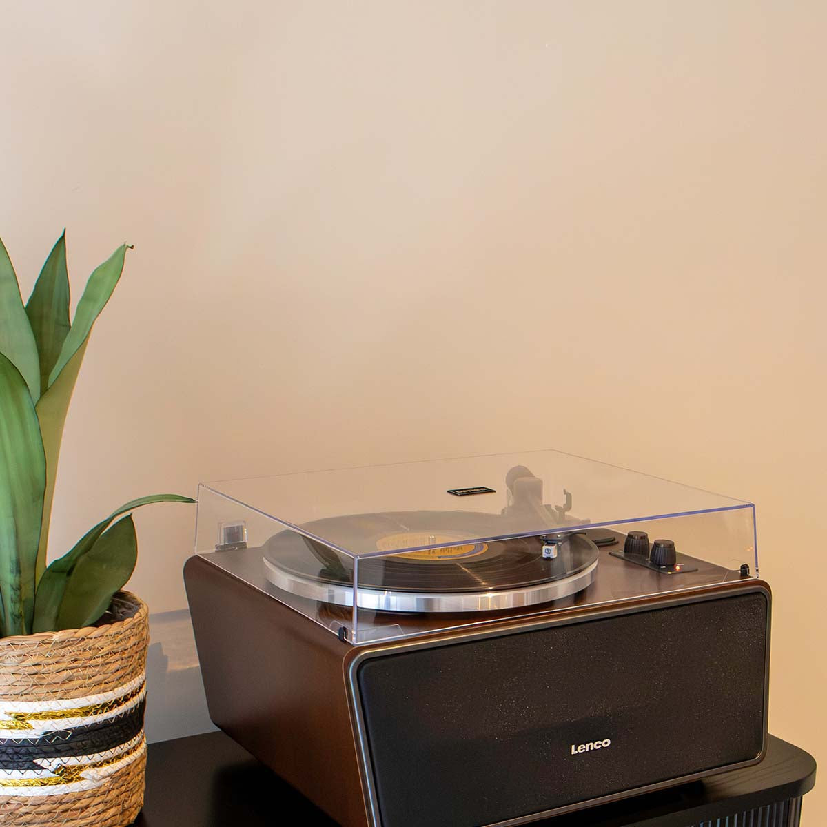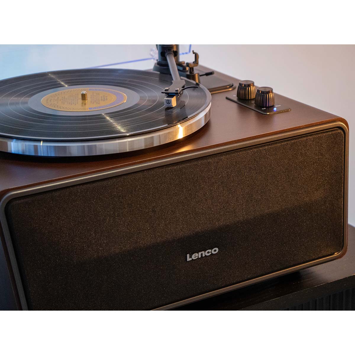 Machen Sie Bekanntschaft mit dem Lenco LS-470WA, einem All-in-One Plattenspieler aus der Expertise-Linie von Lenco mit einem wunderschönen, robusten Design in der eleganten Walnussfarbe. Der LS-470WA ist ein Plattenspieler mit eingebauten Lautsprechern, Riemenantrieb und Bluetooth®, der unter anderem mit einer hochwertigen Audio Technica Cartridge geliefert wird. Die abnehmbare Staubschutzhaube schützt Ihren Plattenspieler vor Staub, während das einzigartige Design und die elegante dunkle Holzoberfläche einen Hauch von Klasse in die direkte Umgebung des Plattenspielers bringen.
