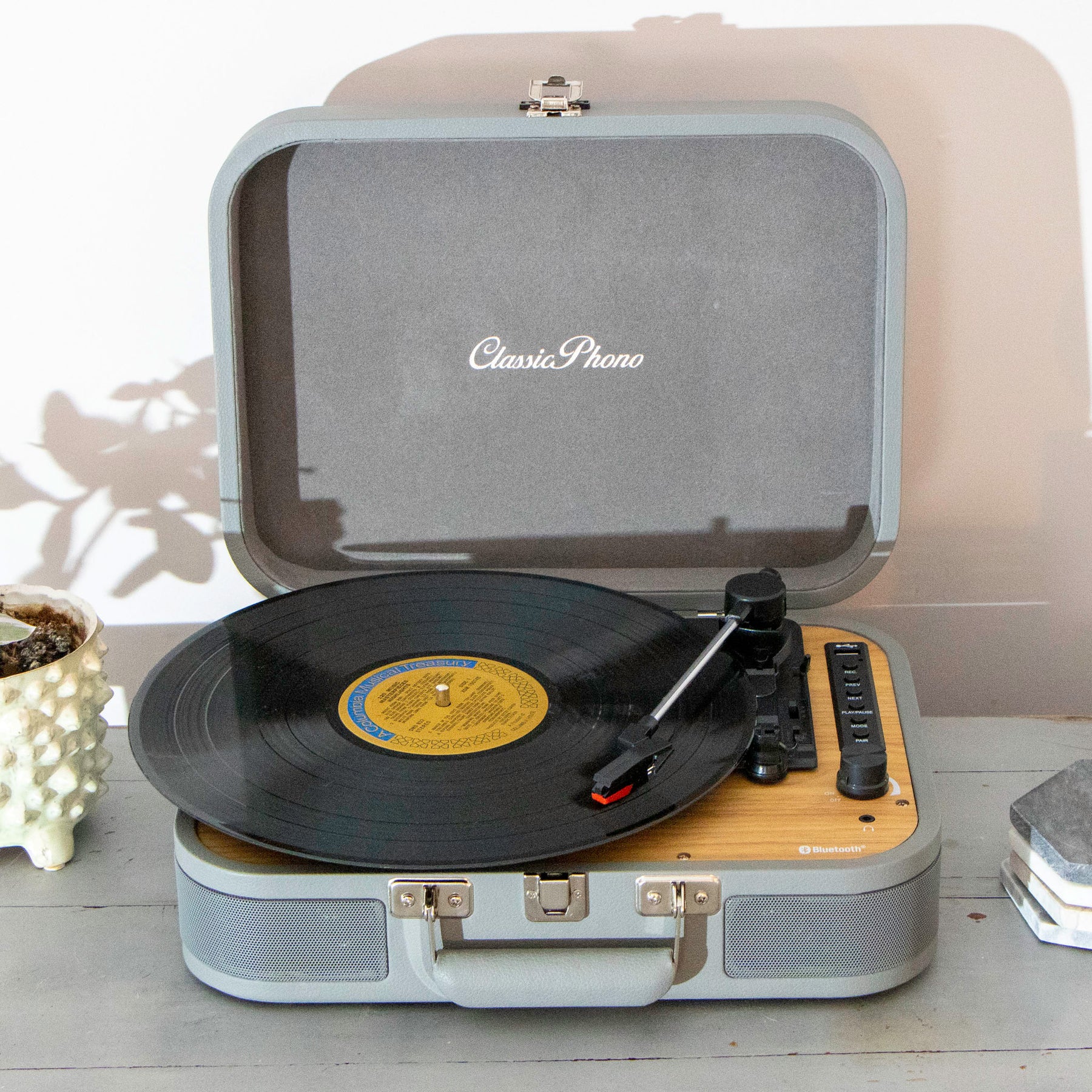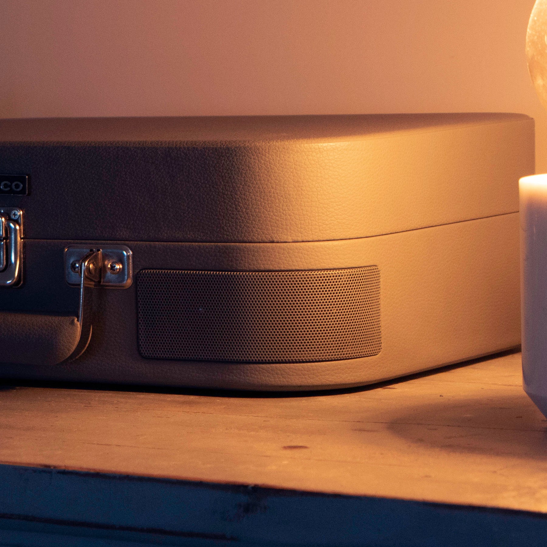 Alles in einem: Kofferplattenspieler mit eingebauten Lautsprechern