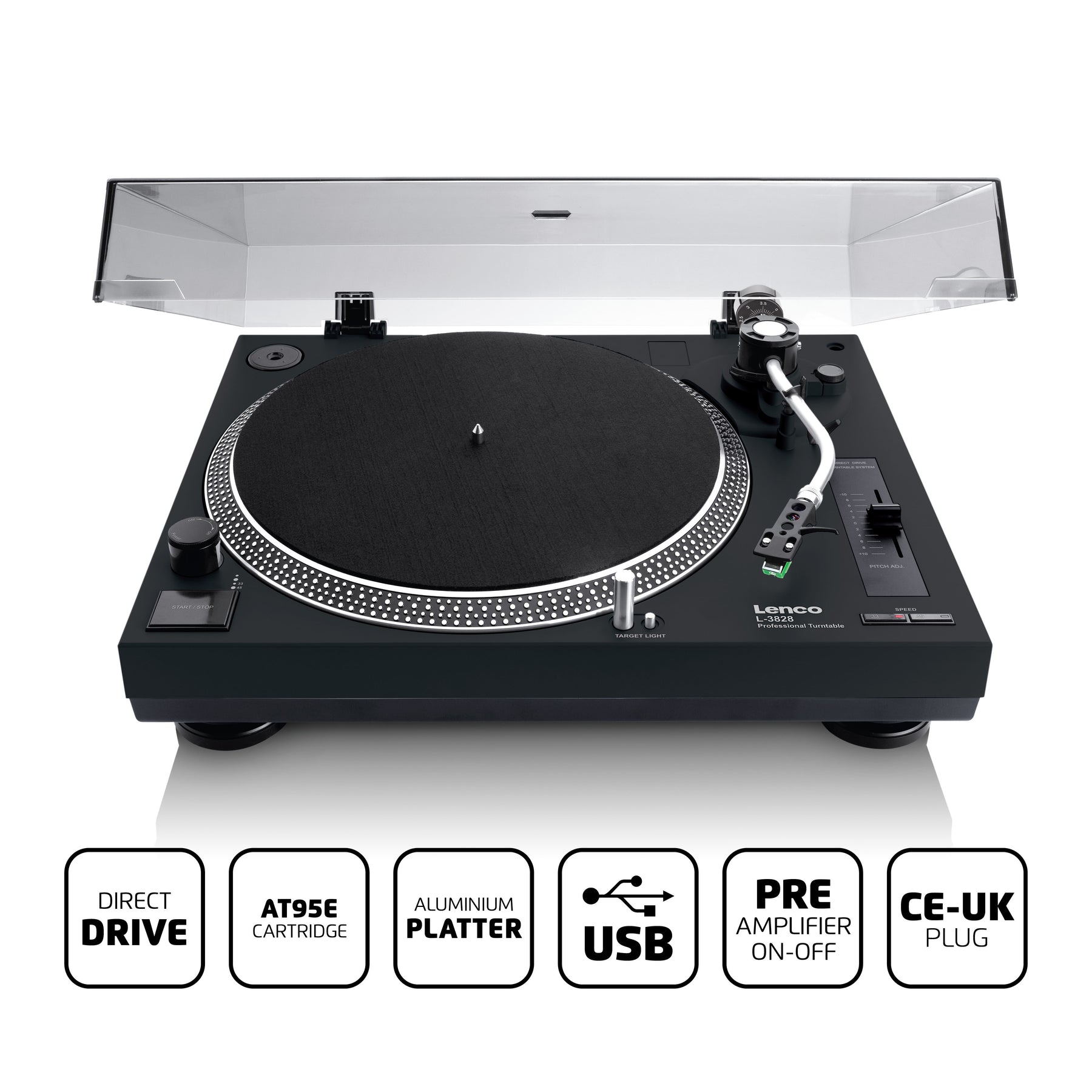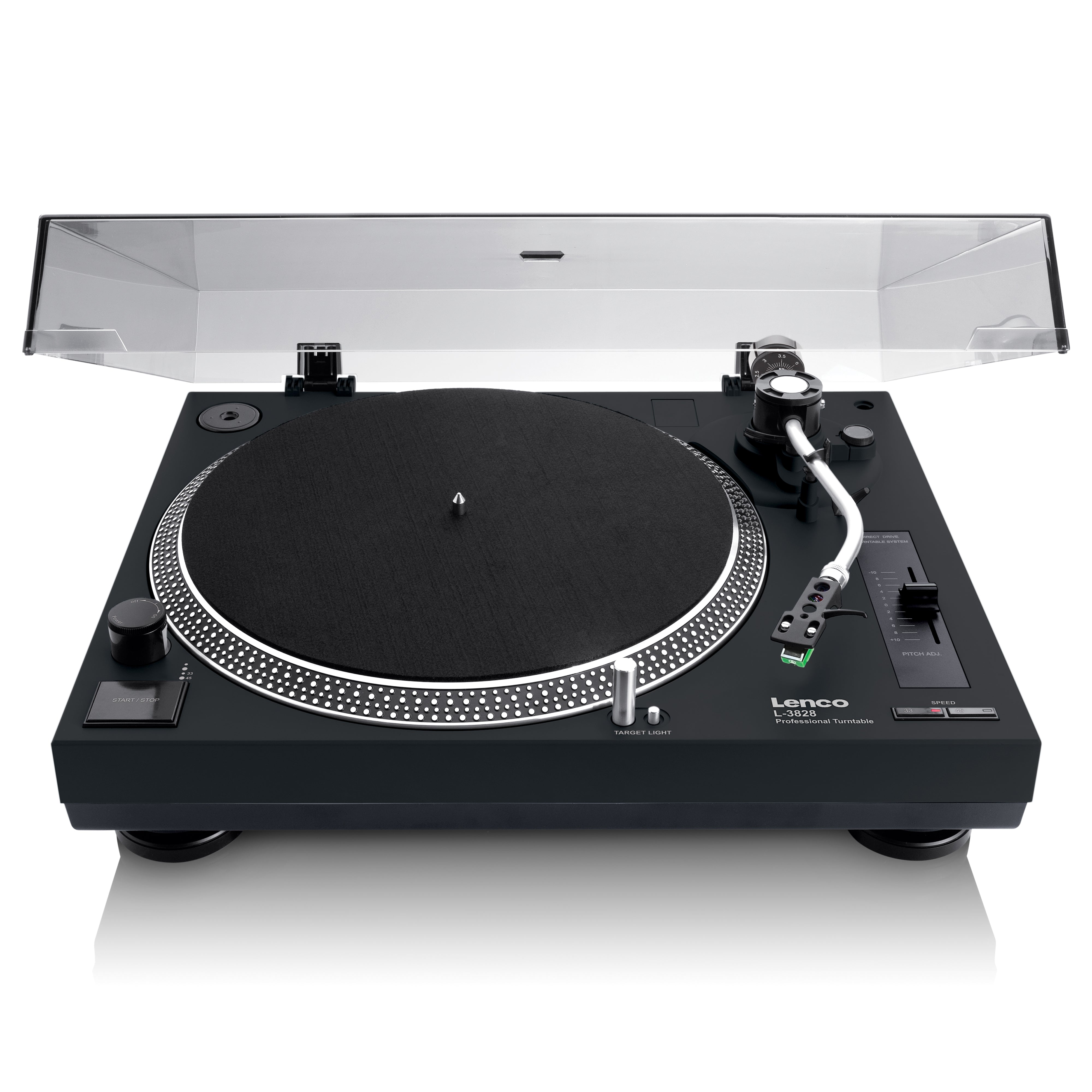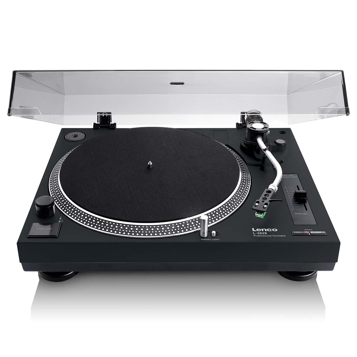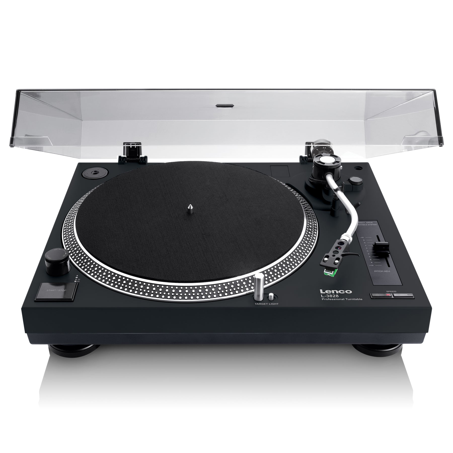 Der Lenco L-3828 ist ein kompakter, leistungsstarker Plattenspieler, mit dem Sie Ihr Lieblings-Vinyl ganz einfach auf Knopfdruck genießen können. Vergessen Sie komplizierte Musikinstallationen, denn mit dem Lenco L-3828 erwecken Sie Ihre Schallplatten mühelos wieder zum Leben. Egal, welche Musik Sie gerade hören, Sie können die Geschwindigkeit ganz einfach wie gewohnt von 33 auf 45 U/min umschalten. Der Plattenspieler ist kinderleicht an externe Lautsprecher über den RCA-Anschluss auf der Rückseite des Plattenspielers, anzuschließen. So ist jeder Raum mit Ihrer Musik gefüllt. Der Lenco L-3828 ist im Besonderen für DJs geeignet. Die Direct-Drive-Funktion (Schnellstart) sorgt dafür, dass die Platte sofort startet. Dieser Plattenspieler ist noch dazu für optimale Benutzerfreundlichkeit beleuchtet und hat ein Stroboskop. Dank des eingebauten Phono-Vorverstärkers können Sie den Lenco L-3828 direkt an Ihr Mischpult oder Ihre Stereoanlage anschließen. Der Lenco L-3828 wird mit einer abnehmbaren Staubschutzhaube geliefert, die den Plattenspieler schützt. Das Gerät lässt sich leicht mit einem weichen, trockenen Tuch sauber halten und die Nadel können Sie leicht selbst austauschen. Im Laufe der Jahre sind Ihre Schallplatten möglicherweise alt und empfindlich geworden. Damit Ihre Lieblingsmusik nicht verloren geht, können Sie Ihre kostbare Vinylsammlung ganz einfach mit dem Lenco L-3828 digitalisieren. Schließen Sie den Plattenspieler über den USB-Anschluss an Ihren Computer an, und die Arbeit ist getan. Wo auch immer Sie hingehen, Sie werden immer Ihre Lieblingsmusik dabei haben. Der Lenco L-3828 ist in schwarz erhältlich.