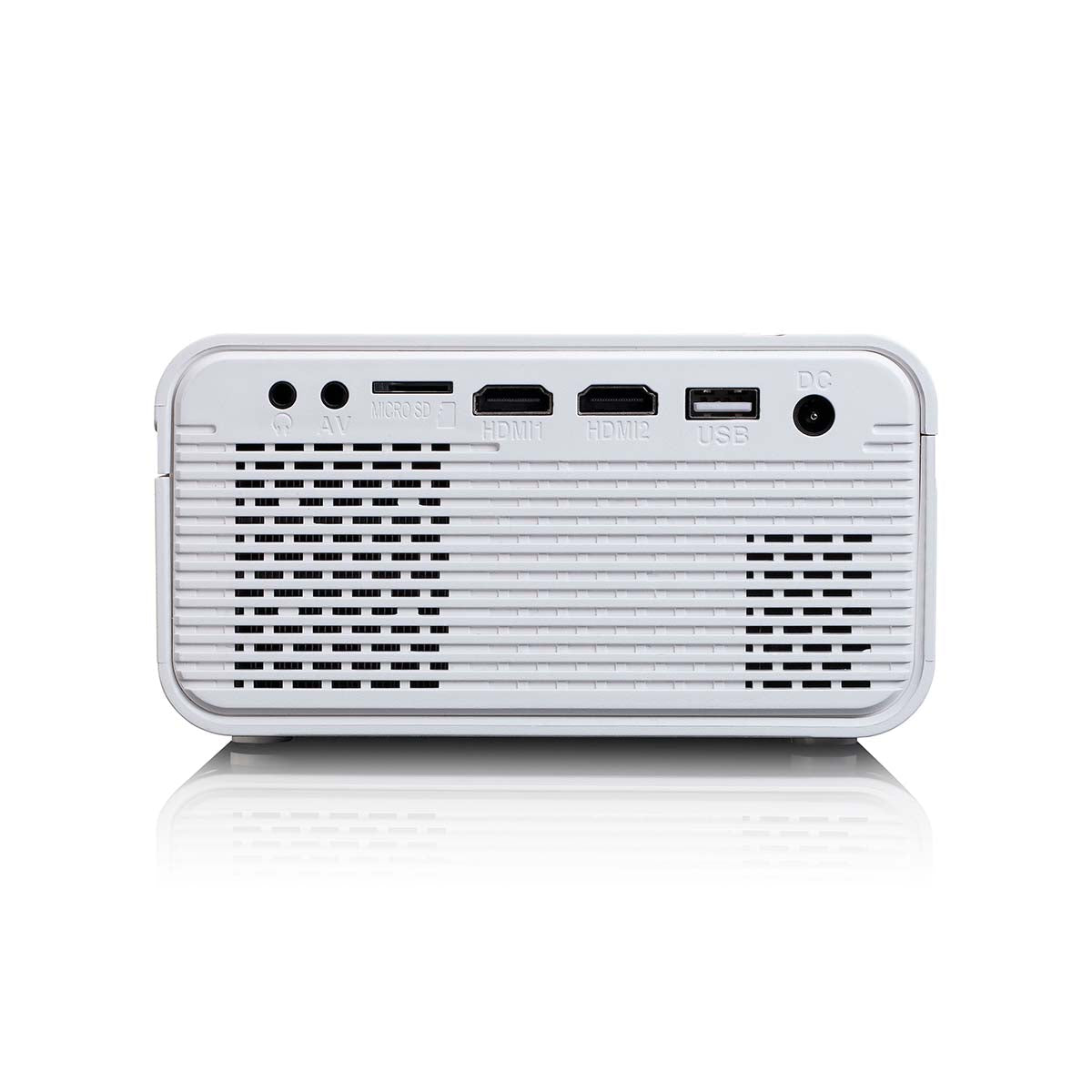 Der Lenco LPJ-280WH ist kompakt und überall aufstellbar. Zudem ist dieser Beamer einfach und schnell in Betrieb zu nehmen. Der Beamer verfügt über zahlreiche Anschlussmöglichkeiten, wie 2 HDMI-Anschlüsse, 1 USB-Anschluss, 1 Micro-SD-Kartensteckplatz, 1 AV-Eingang und 1 VGA-Anschluss. Der Beamer ist MHL-kompatibel, sodass Sie Ihr Android- oder Apple-Gerät einfach mit einem MHL-Kabel (optional) anschließen können. Die mitgelieferte Fernbedienung macht den LPJ-280WH komplett.