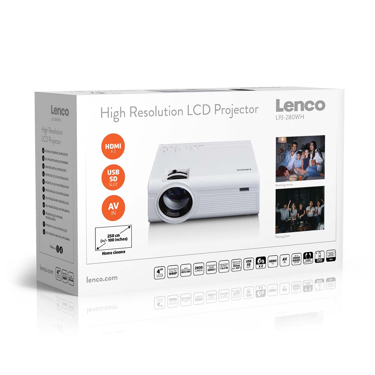 Erleben Sie ultimatives Sehvergnügen mit dem Lenco LPJ-280WH, einem Beamer mit hoher Auflösung, der für alle entwickelt wurde, die auf der Suche nach Qualität und umfassender Funktionalität sind. Der LCD Projektor unterstützt Full HD 1080P Inhalte und bietet eine klare, scharfe Bildqualität. Dank 2800 Lumen und einem Kontrastverhältnis von 3000:1 genießen Sie lebendige Farben und tiefe Schwarztöne. Mit einer beeindruckenden LED-Lebensdauer von bis zu 30.000 Stunden, eingebauten Stereo-Lautsprechern und einer praktischen Fernbedienung ist der LPJ-280WH die ideale Wahl für ein langanhaltendes und fesselndes Seherlebnis. Lehnen Sie sich entspannt auf dem Sofa zurück und spielen Sie Ihre Lieblingsfilme und DVDs auf dem Lenco LPJ-280WH ab. Organisieren Sie die besten Filmabende mit Familie und Freunden, nutzen Sie diesen Beamer zum Abspielen selbstgemachter Videos und präsentieren Sie die schönsten Geschäftspräsentationen.