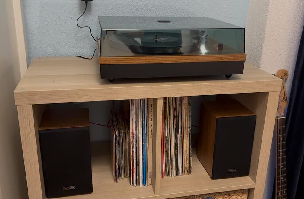 Der Lenco LS-301 ist ein Plattenspieler mit 2 separaten Holzlautsprechern, mit dem Sie Ihr Lieblings-Vinyl ganz einfach auf Knopfdruck genießen können. Vergessen Sie komplizierte Musikinstallationen, denn mit dem Lenco LS-301 erwecken Sie Ihre Schallplatten mühelos wieder zum Leben. Ob Einzel- oder Langspielplatte (LP), Sie können die Geschwindigkeit leicht von 33 auf 45 U/min abändern. Falls Ihnen die mitgelieferten Lautsprecher nicht ausreichen, ist der Plattenspieler kinderleicht an ein externes Hifi-System über den Cinch-Anschluss auf der Rückseite des Plattenspielers anzuschließen. So ist jeder Raum mit Ihrer Musik gefüllt. Der Plattenspieler verfügt auch über Bluetooth-Empfang, sodass Sie problemlos Musik von Ihrem Smartphone streamen können. Der Lenco LS-301 wird mit einer abnehmbaren Staubschutzhaube geliefert, die den Plattenspieler vor Staubbildung schützt. Das Gerät lässt sich leicht mit einem weichen, trockenen Tuch sauber halten und die Nadel können Sie leicht selbst austauschen. Da Lenco wie kein anderer weiß, dass Sie vorsichtig mit Ihrer Vinylsammlung umgehen wollen, ist der Lenco LS-301 mit Auto-Stopp ausgestattet. Nachdem der letzte Track abgespielt wurde, hebt sich die Nadel selbst von der Platte und der Arm kehrt automatisch zur Ablagestütze zurück. Der Plattenspieler ist in schwarz und holz erhältlich.