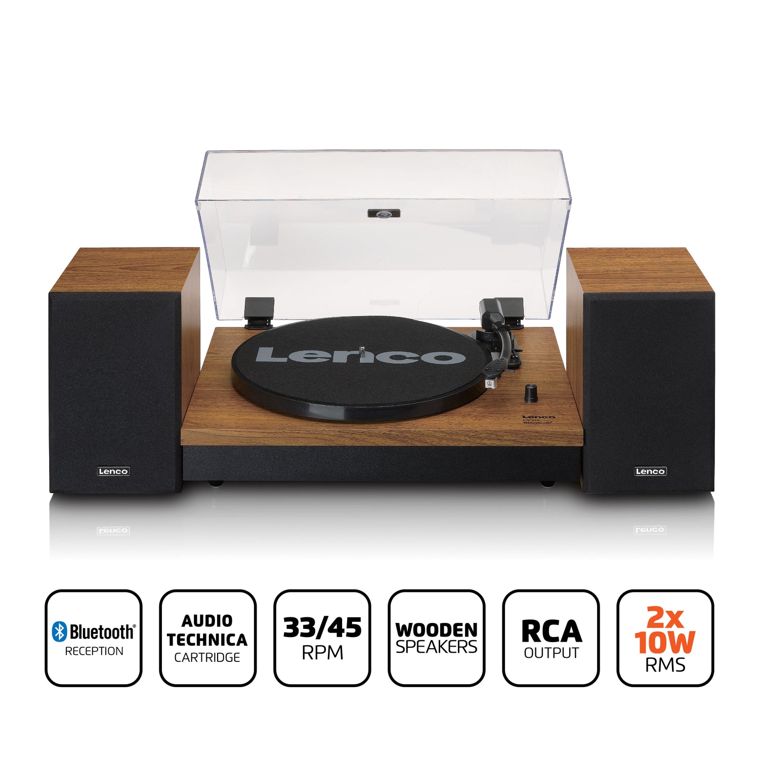 Lenco LS-310WD - Bluetooth® Plattenspieler mit zwei externen Lautsprechern und 2 x 10 Watt RMS, holz