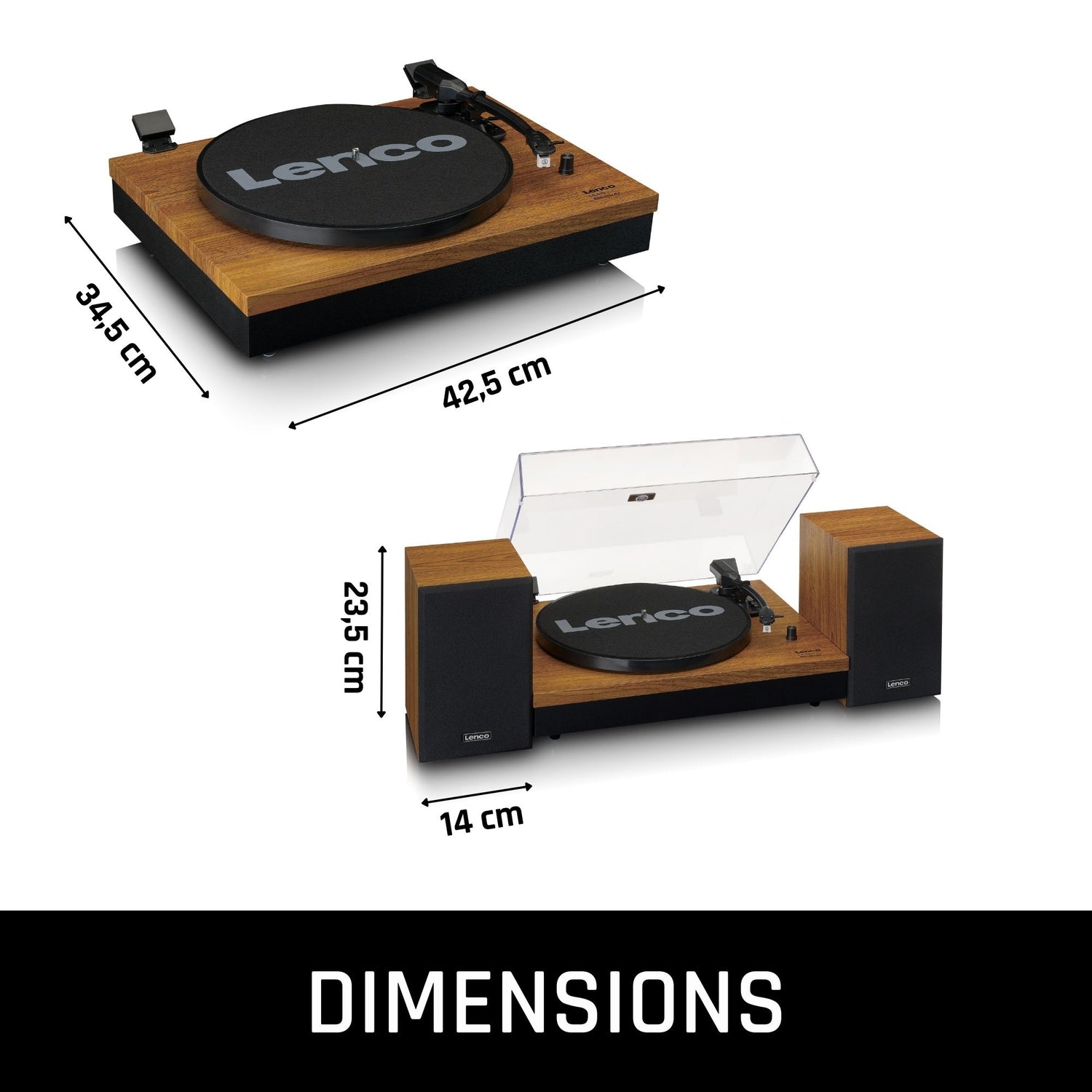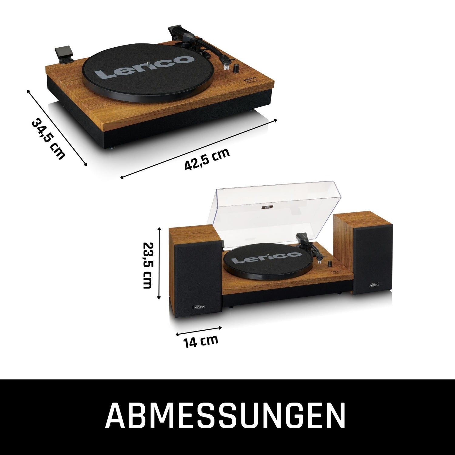 Der Lenco LS-310 ist ein Plattenspieler mit 2 separaten Holzlautsprechern, mit dem Sie Ihr Lieblings-Vinyl ganz einfach auf Knopfdruck genießen können. Vergessen Sie komplizierte Musikinstallationen, denn mit dem Lenco LS-310 erwecken Sie Ihre Schallplatten mühelos wieder zum Leben. Ob Einzel- oder Langspielplatte (LP), Sie können die Geschwindigkeit leicht von 33 auf 45 U/min abändern. Falls Ihnen die mitgelieferten Lautsprecher nicht ausreichen, ist der Plattenspieler kinderleicht an ein externes Hifi-System über den Cinch-Anschluss auf der Rückseite des Plattenspielers anzuschließen. So ist jeder Raum mit Ihrer Musik gefüllt. Der Plattenspieler verfügt auch über Bluetooth-Empfang, sodass Sie problemlos Musik von Ihrem Smartphone streamen können. Der Lenco LS-310 wird mit einer abnehmbaren Staubschutzhaube geliefert, die den Plattenspieler vor Staubbildung schützt. Das Gerät lässt sich leicht mit einem weichen, trockenen Tuch sauber halten und die Nadel können Sie leicht selbst austauschen. Da Lenco wie kein anderer weiß, dass Sie vorsichtig mit Ihrer Vinylsammlung umgehen wollen, ist der Lenco LS-310 mit Auto-Stopp ausgestattet. Nachdem der letzte Track abgespielt wurde, hebt sich die Nadel selbst von der Platte und der Arm kehrt automatisch zur Ablagestütze zurück. Der Plattenspieler ist in schwarz und holz erhältlich.